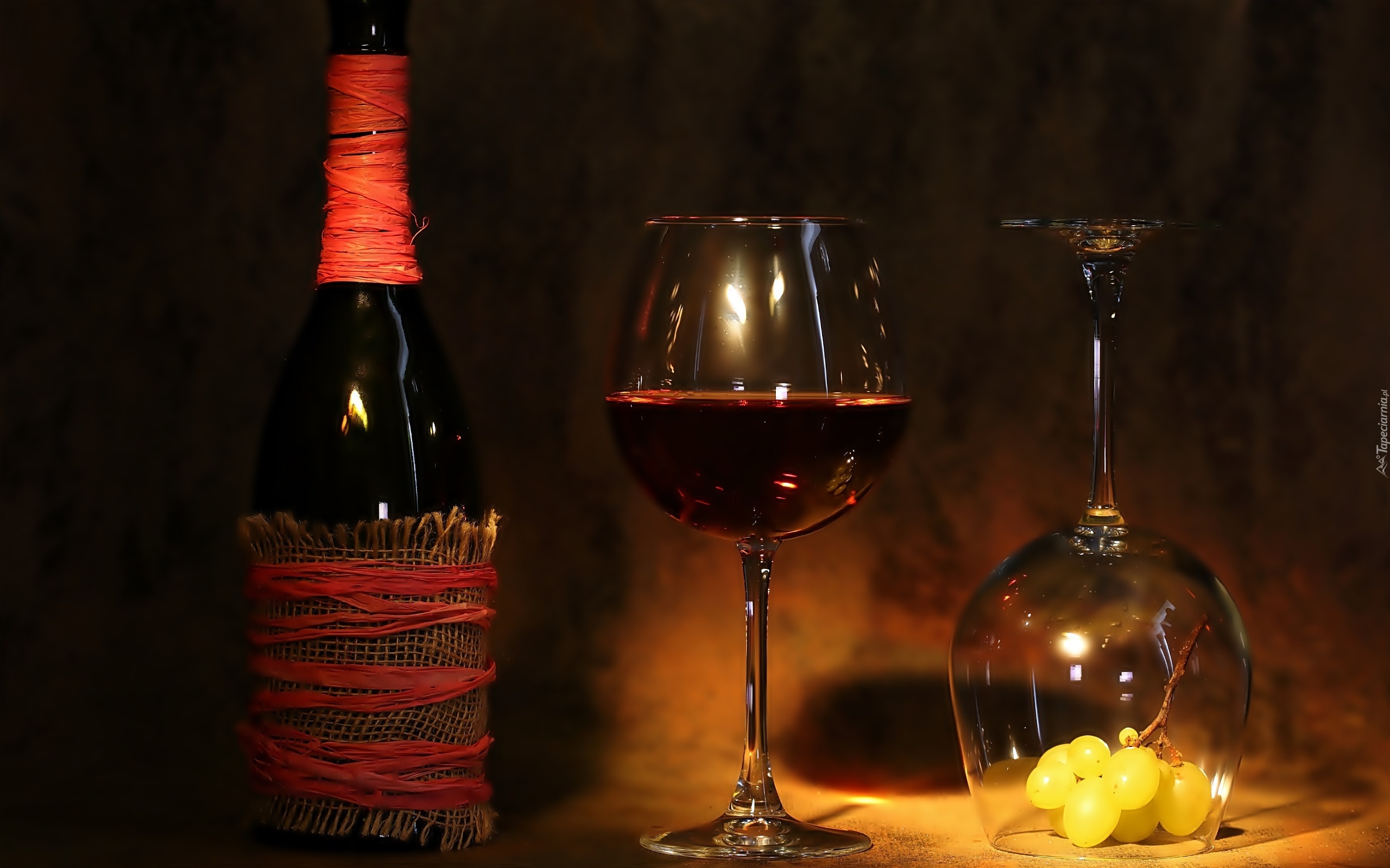 Edytor tapety: Wino, Czerwone, Kieliszki, Winogrono, Kompozycja