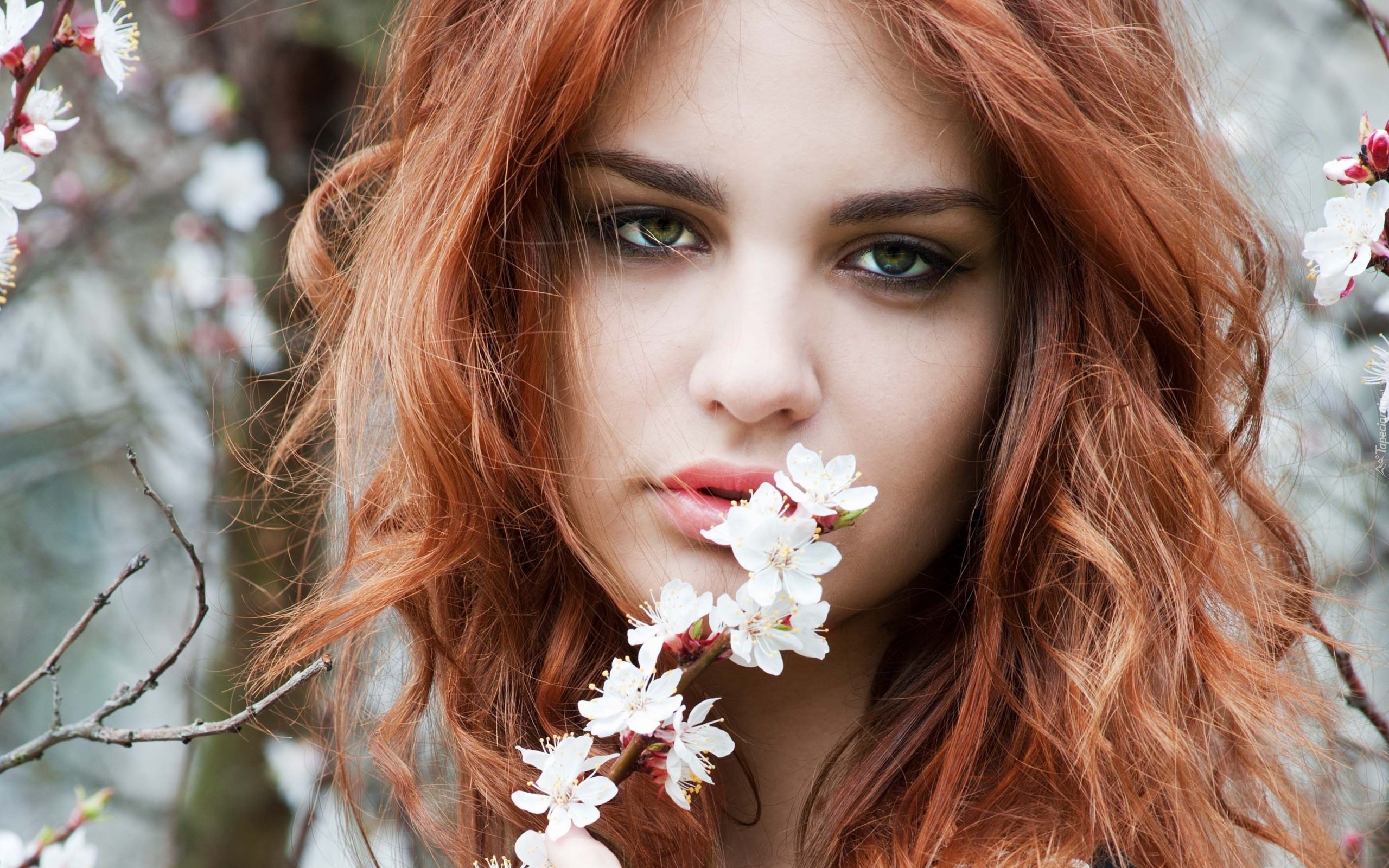 Edytor tapety: Ruda, Dziewczyna, Ukwiecona, Gałazka