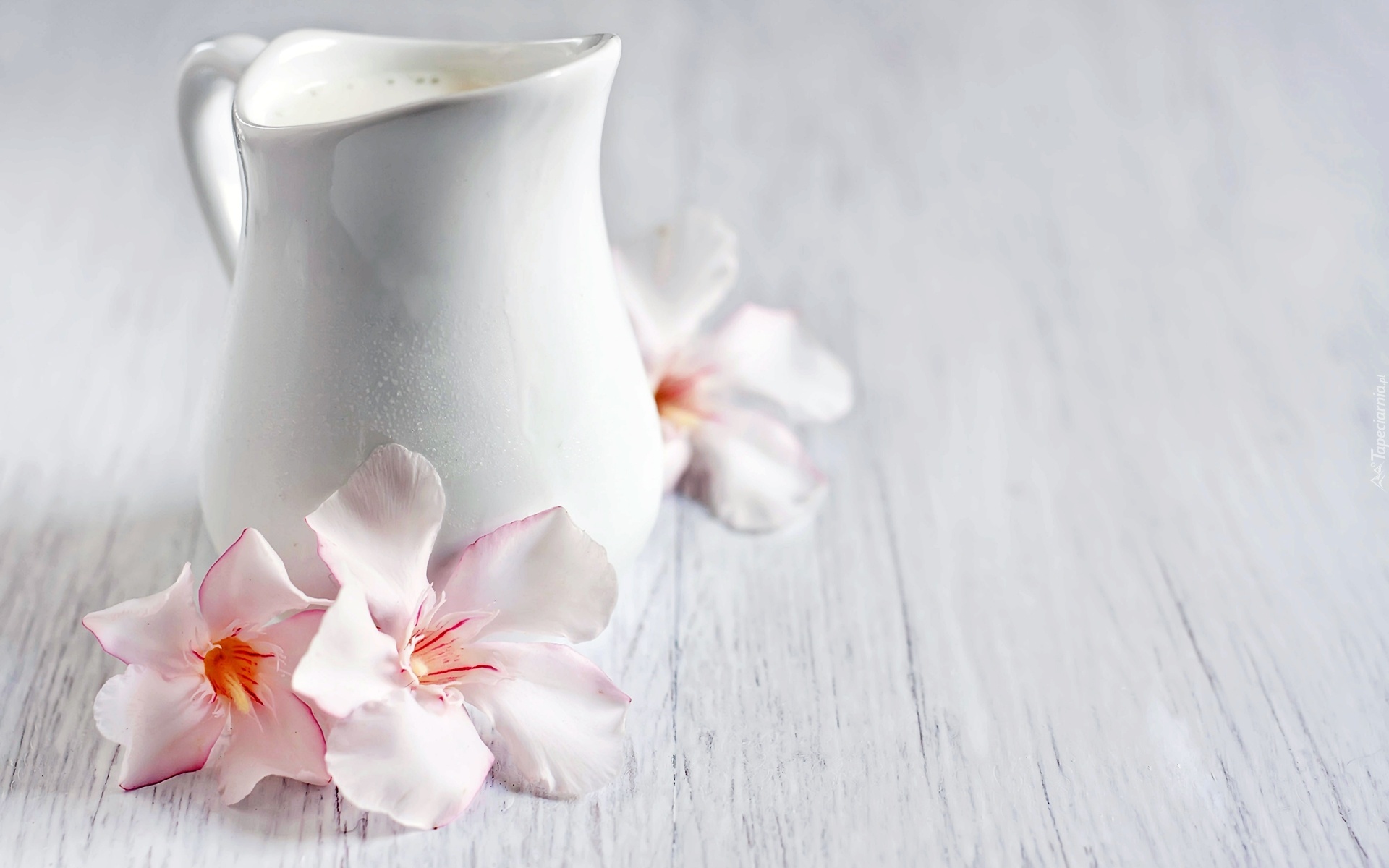 Edytor tapety: Dzbanuszek, Mleko, Kwiaty, Azalii, Różanecznika