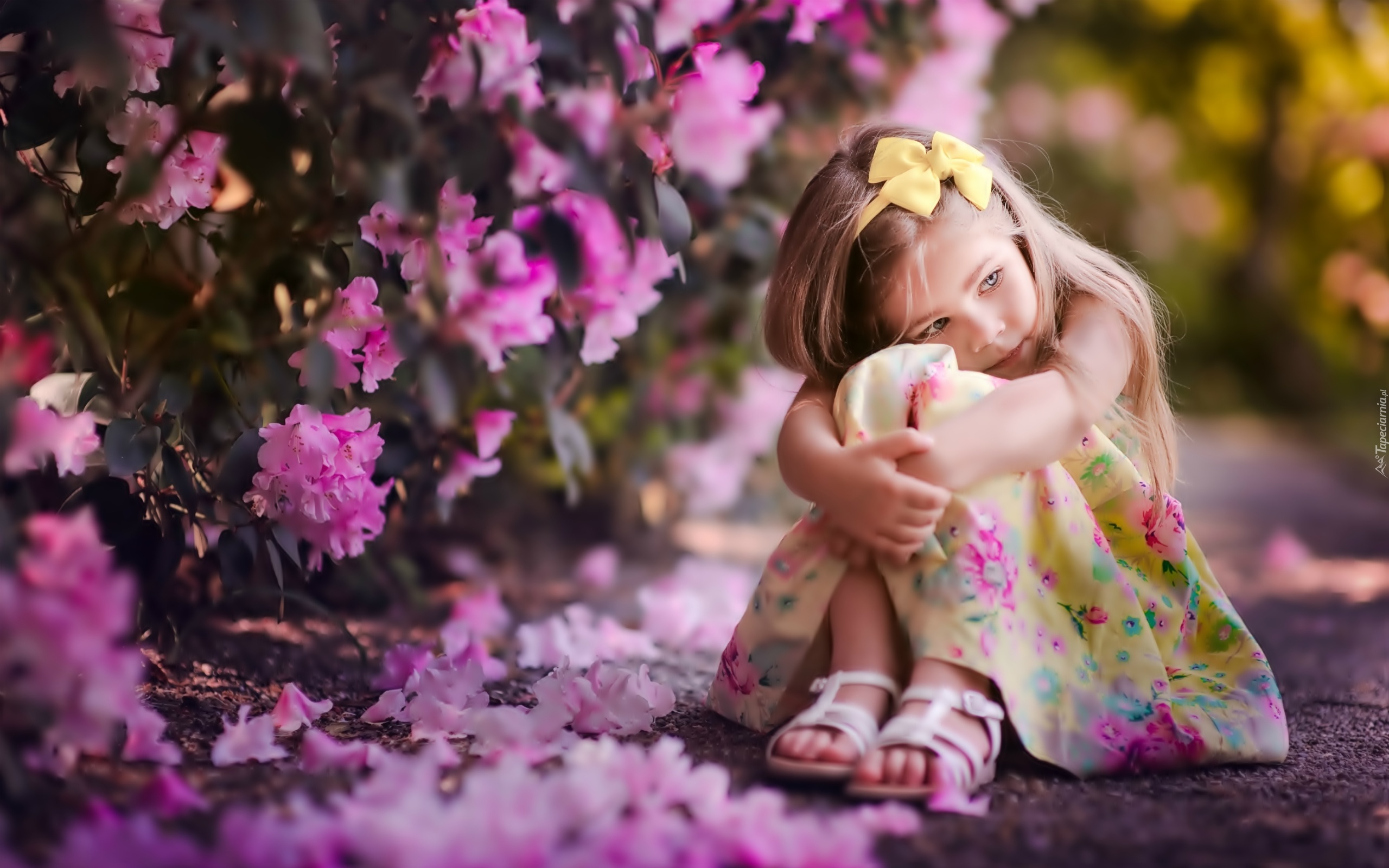 Edytor tapety: Mała, Dziewczynka, Park, Krzewy, Kwiaty