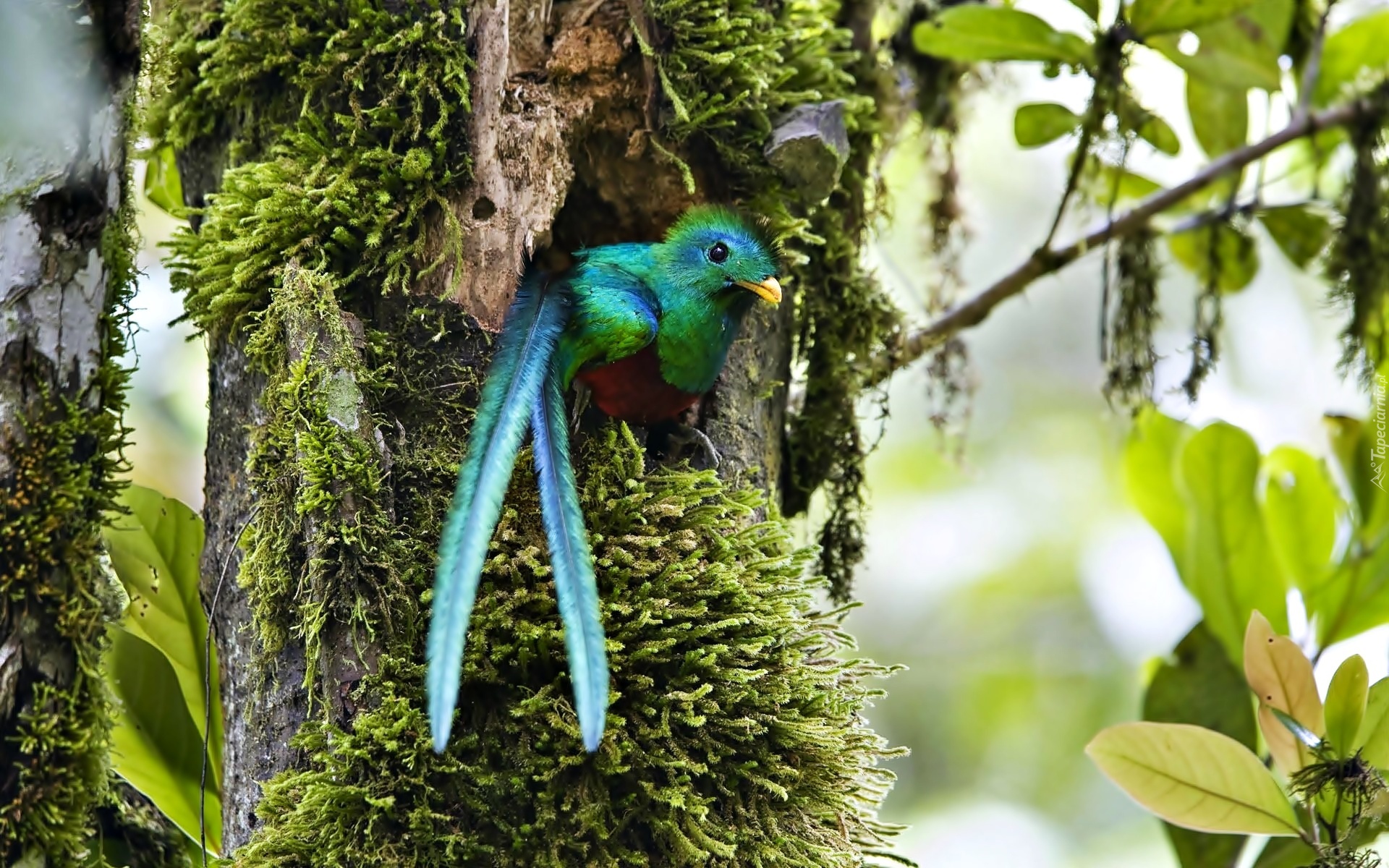 Edytor tapety: Tropikalny, Ptak, Ogon, Drzewo, Rośliny, Kwezal herbowy