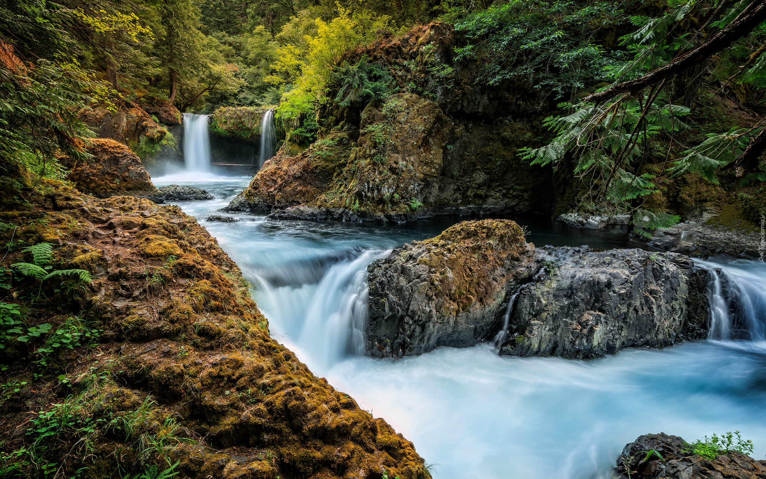 Edytor tapety: Wodospad, Rzeka, Skały, Las