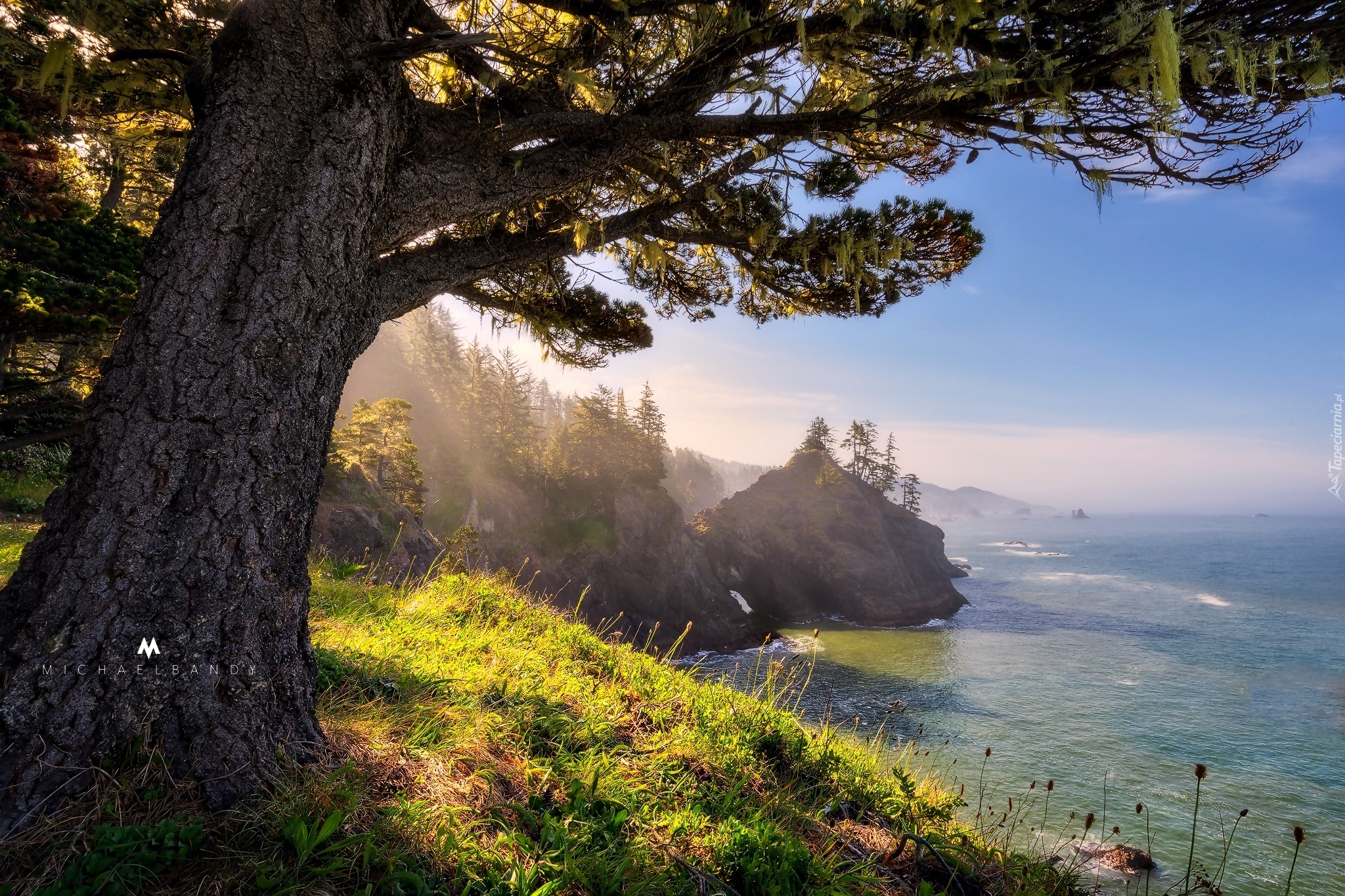 Edytor tapety: Drzewo, Poranek, Wybrzeże, Skały