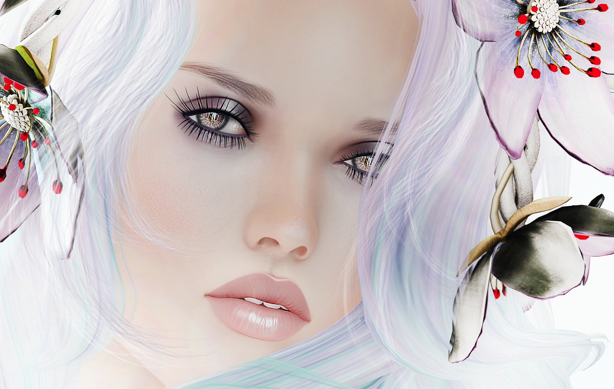 Edytor tapety: Dziewczyna, Kwiaty, Spojrzenie, Portret