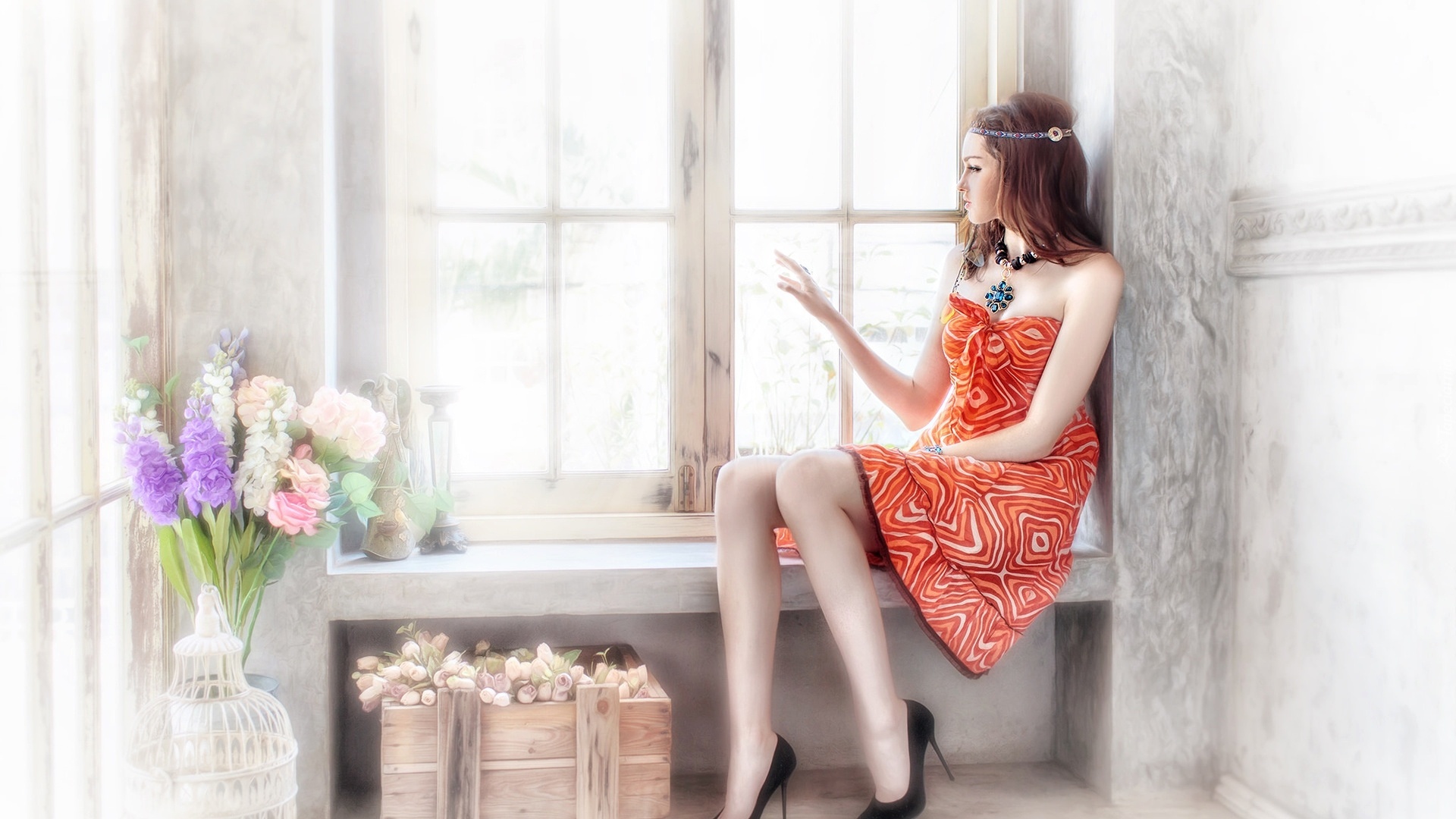 Edytor tapety: Wnętrze, Dziewczyna, Okno