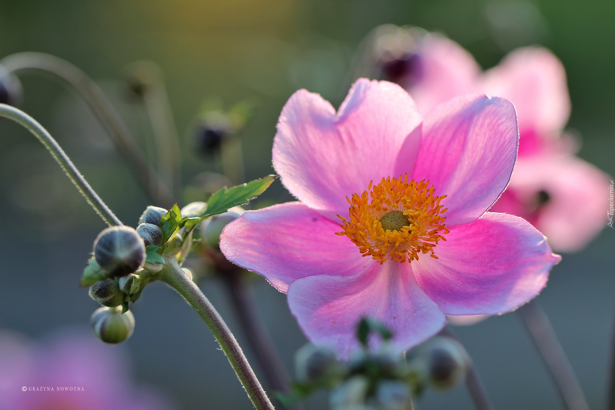 Edytor tapety: Zawilec Japoński, Różowy, Kwiat