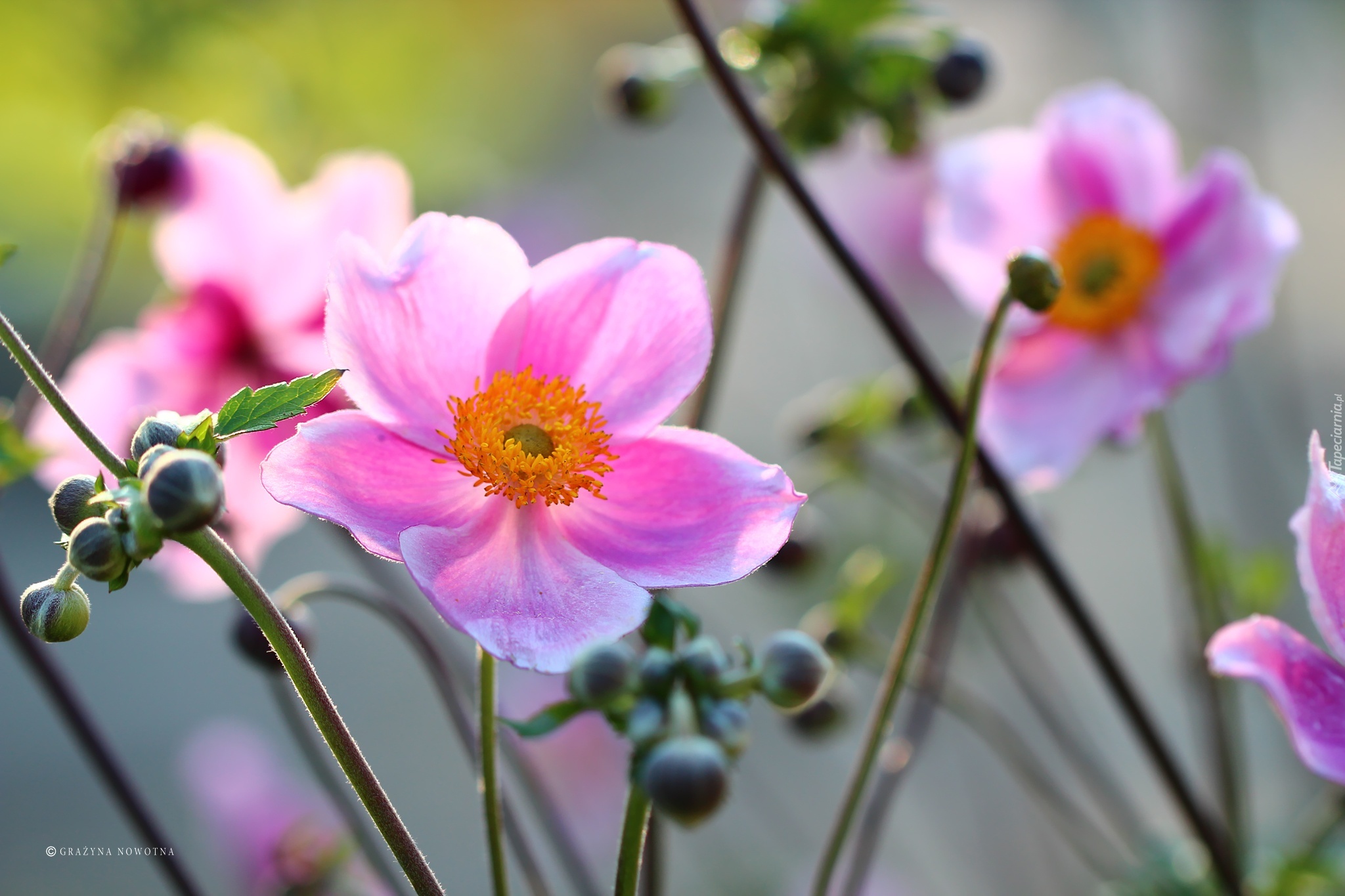 Edytor tapety: Zawilec Japoński, Różowy, Kwiat