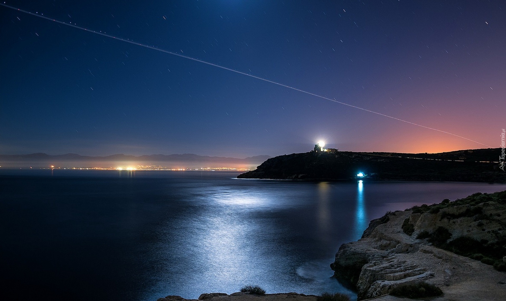 Edytor tapety: Latarnia Morska, Morze, Noc