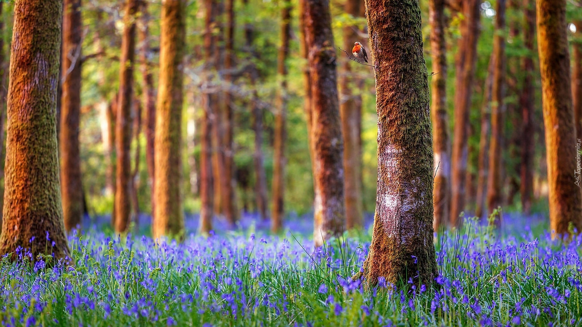Edytor tapety: Las, Łąka, Kwiaty, Drzewa, Gałęzie, Ptak