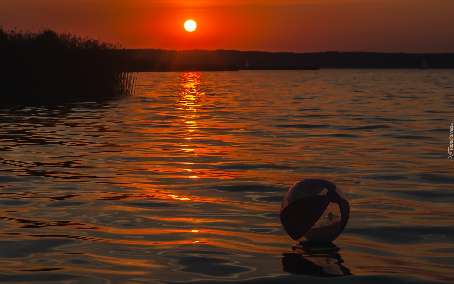 Edytor tapety: Zachód słońca, Jezioro Niegocin, Piłka plażowa