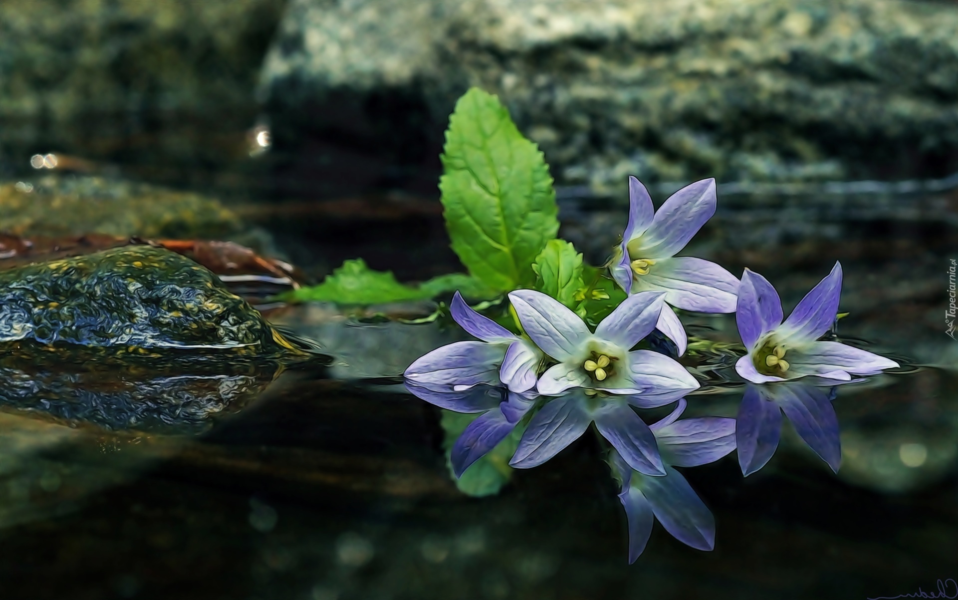 Edytor tapety: Fioletowe, Kwiaty, Dzwonki, Woda, Odbicie
