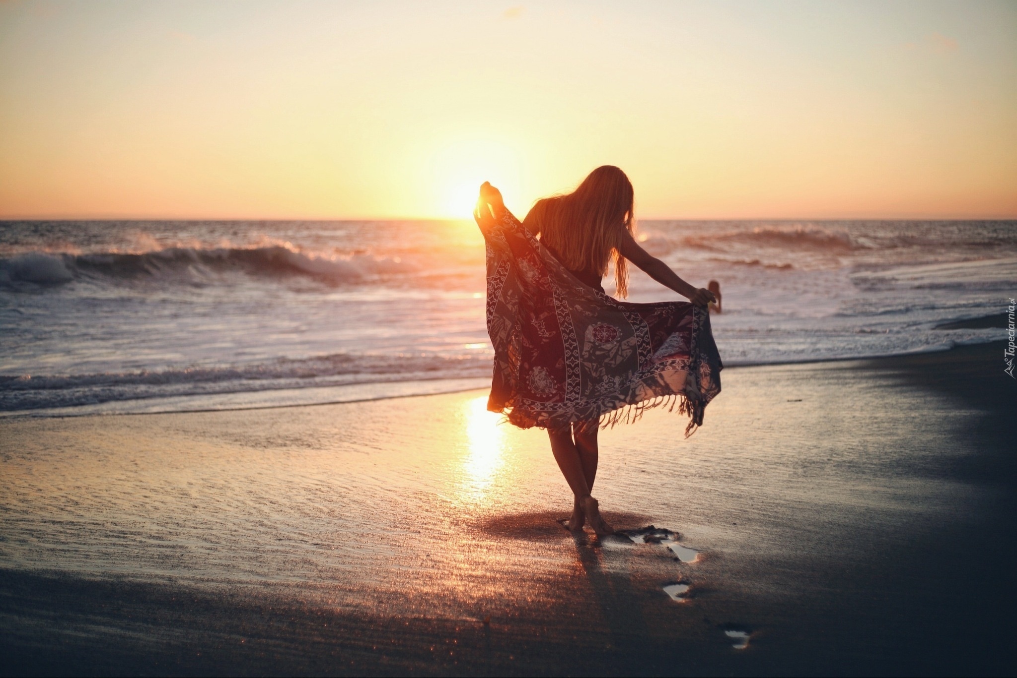 Edytor tapety: Morze, Plaża, Zachód Słońca, Lato, Kobieta
