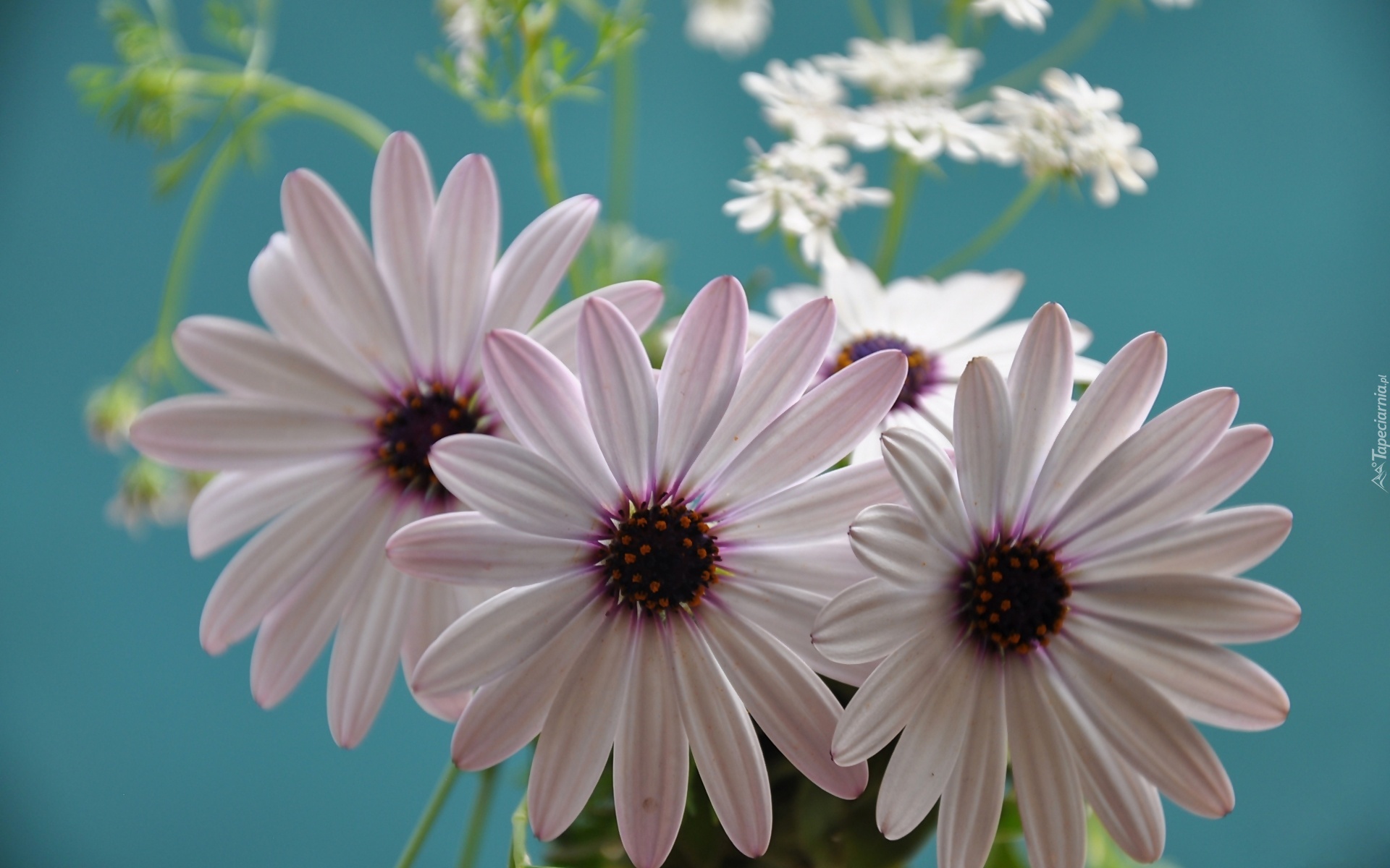 Edytor tapety: Kwiaty, Stokrotki, Afrykańskie, Turkusowe, Tło