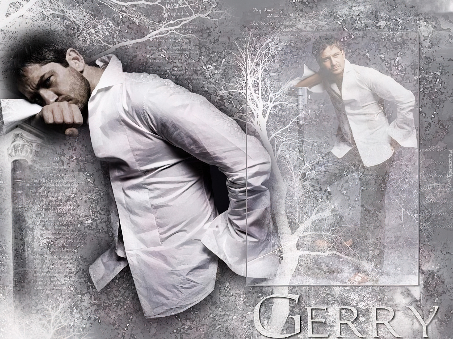 Edytor tapety: Gerard Butler,biała koszula, drzewo
