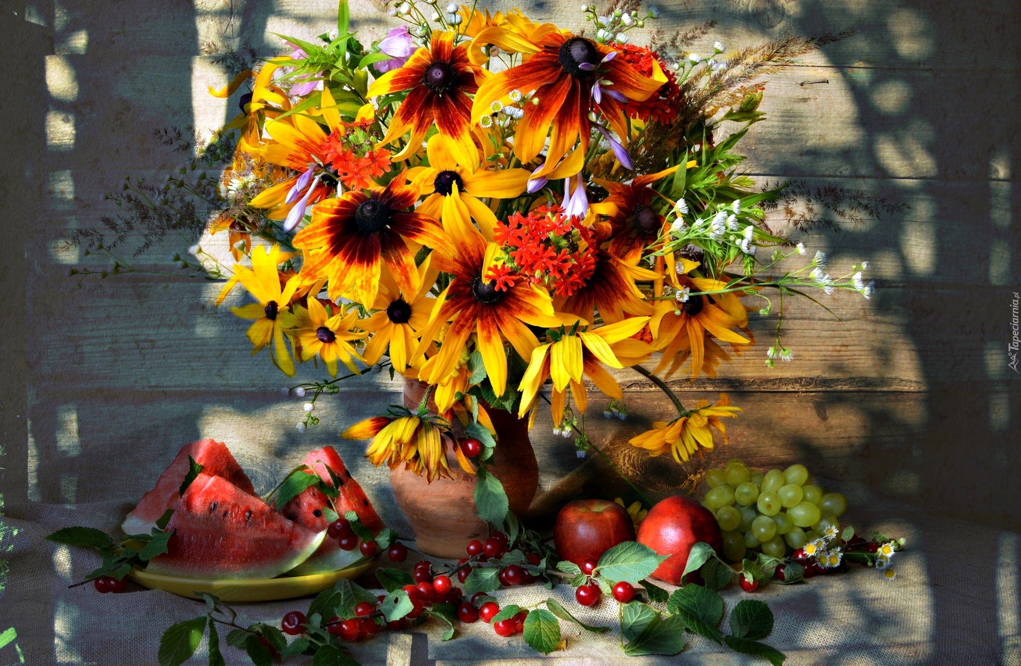 Edytor tapety: Rudbekia, Bukiet Kwiatów, Arbuz, Winogrono