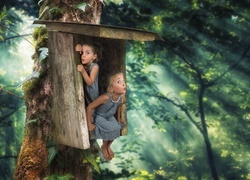Edytor tapety: Drzewo, Budka, Dziewczynki