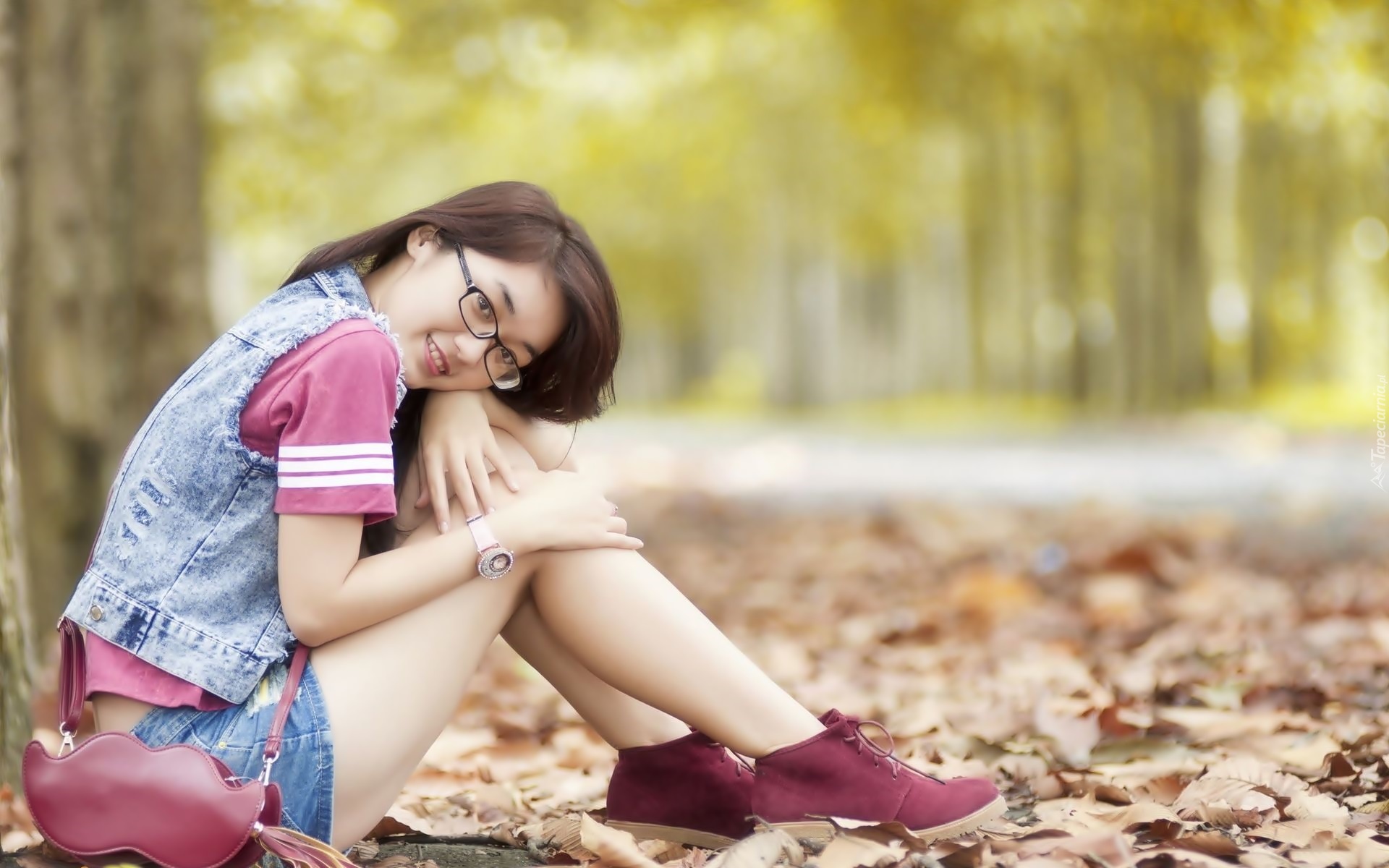Edytor tapety: Jesień, Park, Kobieta, Drzewa, Liście