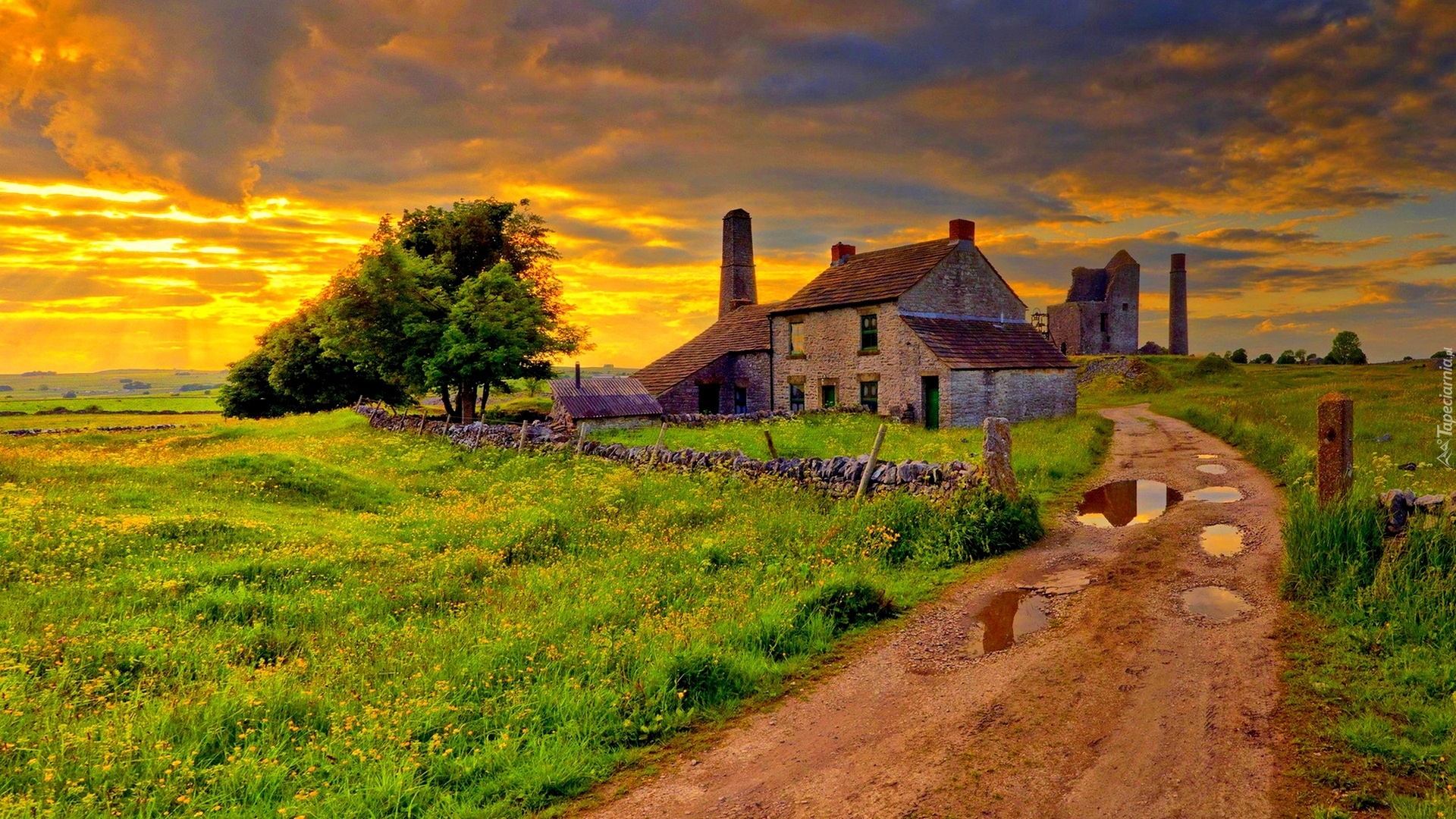 Edytor tapety: Stary, Dom, Droga, Drzewo, Chmury