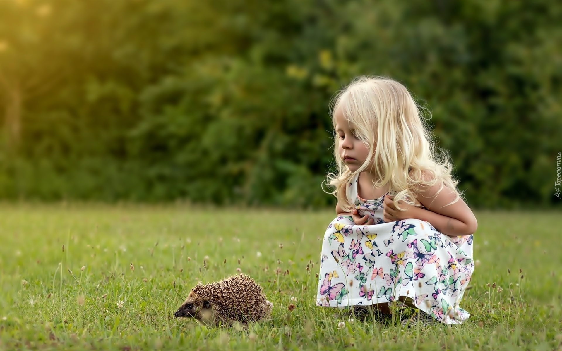 Edytor tapety: Dziewczynka, Łąka, Jeżyk