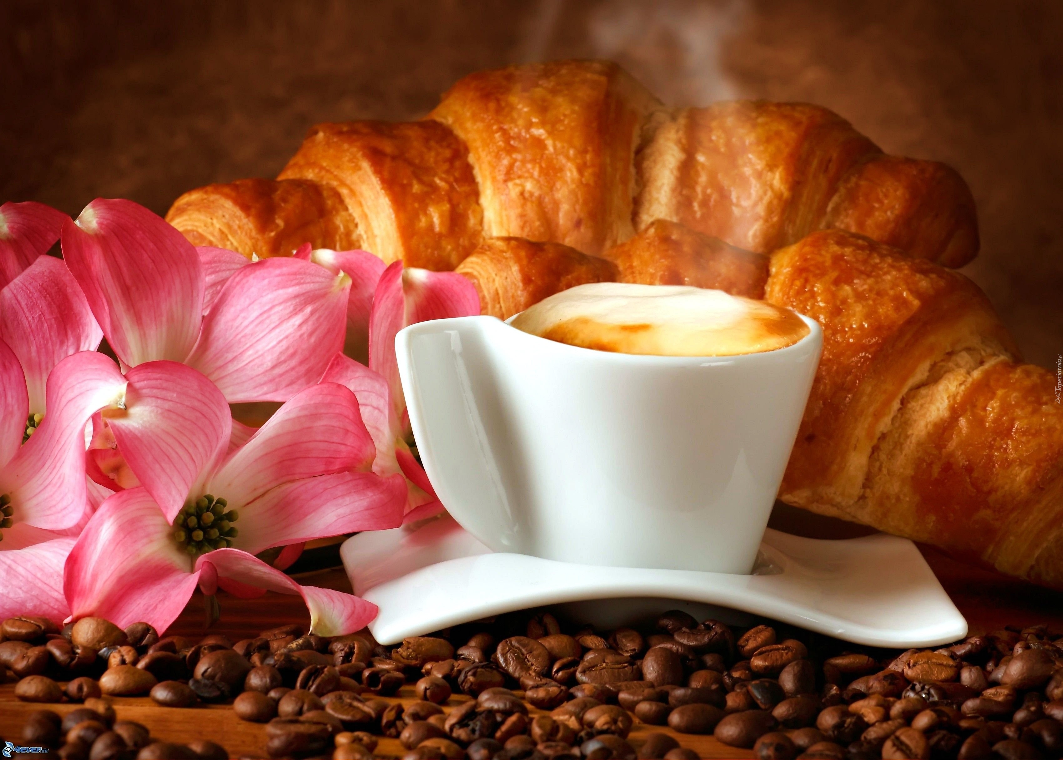 Edytor tapety: Rogale, Kawa, Kwiatki