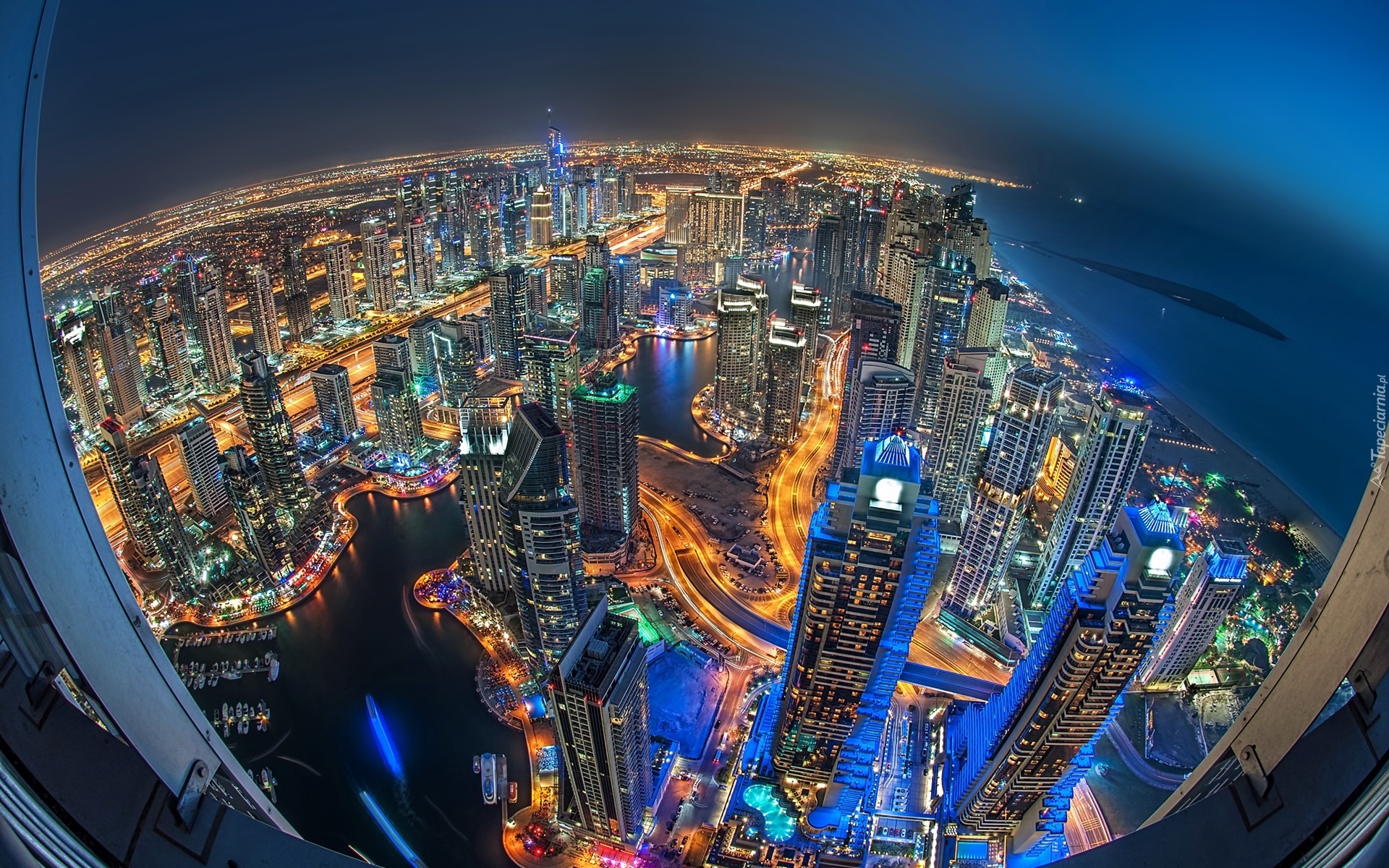 Edytor tapety: Miasto, Nocą, Dubaj, Drapacze, Chmur