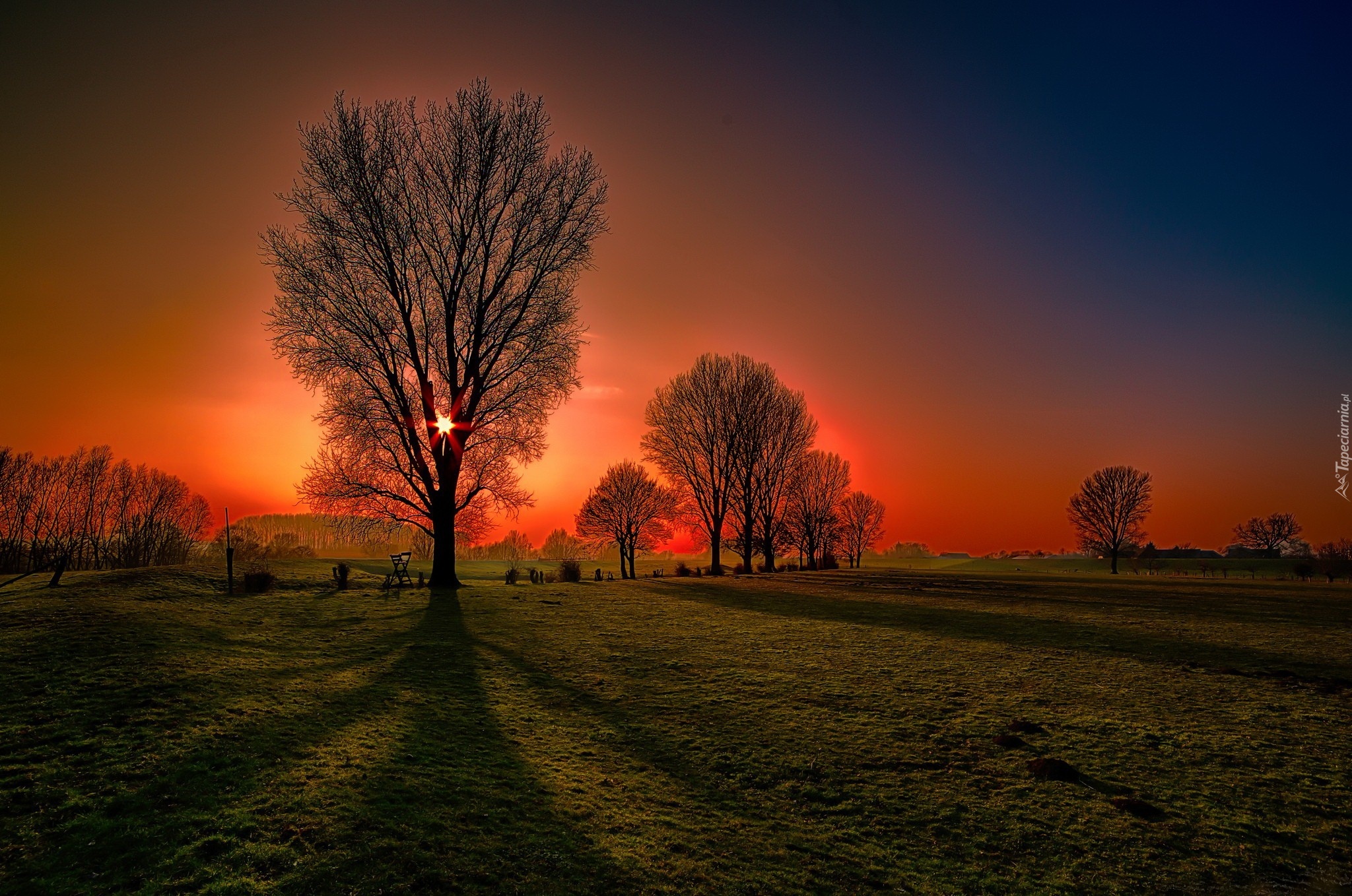 Edytor tapety: Pole, Zachód Słońca, Drzewa