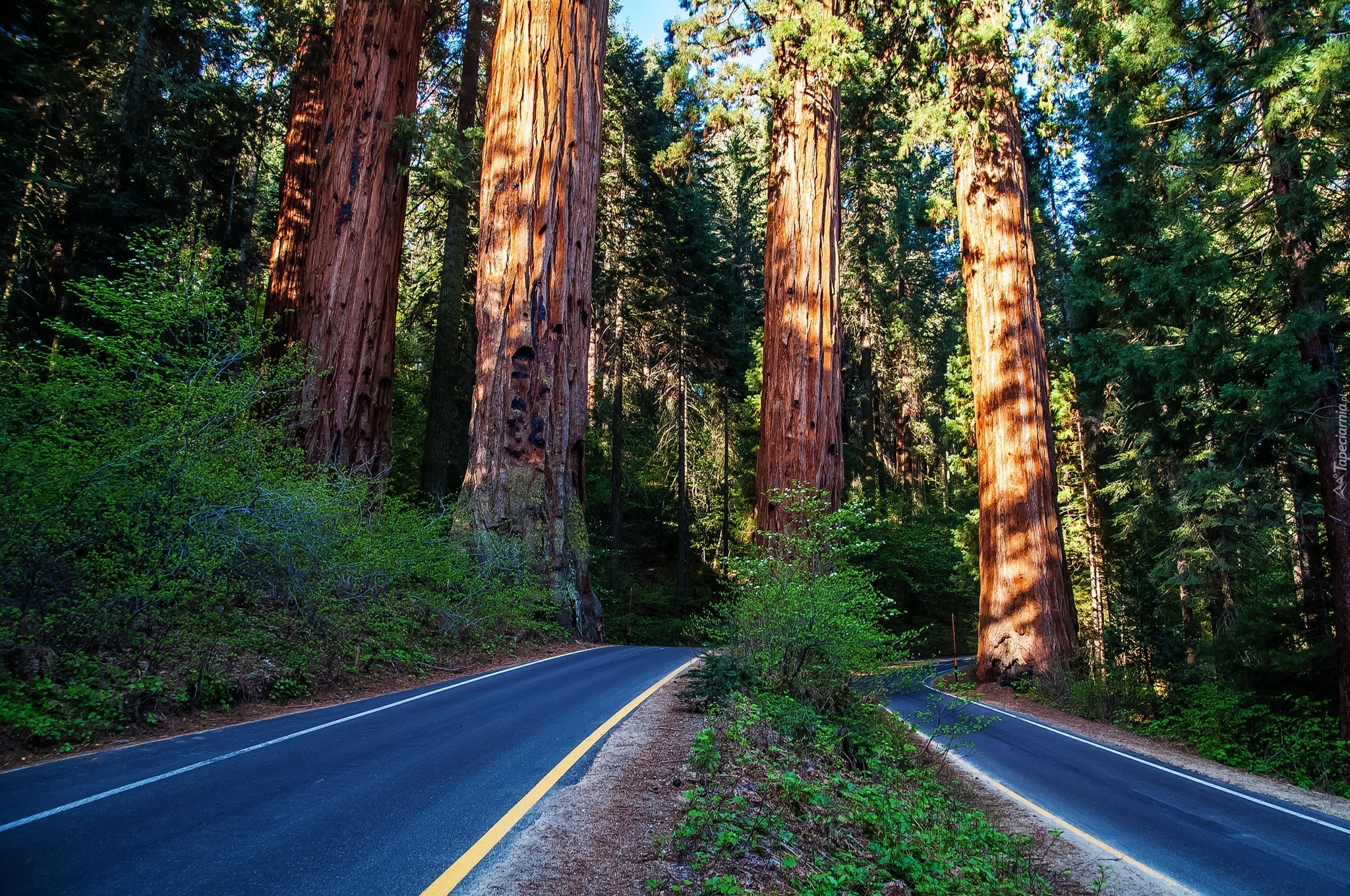 Edytor tapety: Droga, Przez, Las, Drzewa, Sekwoje