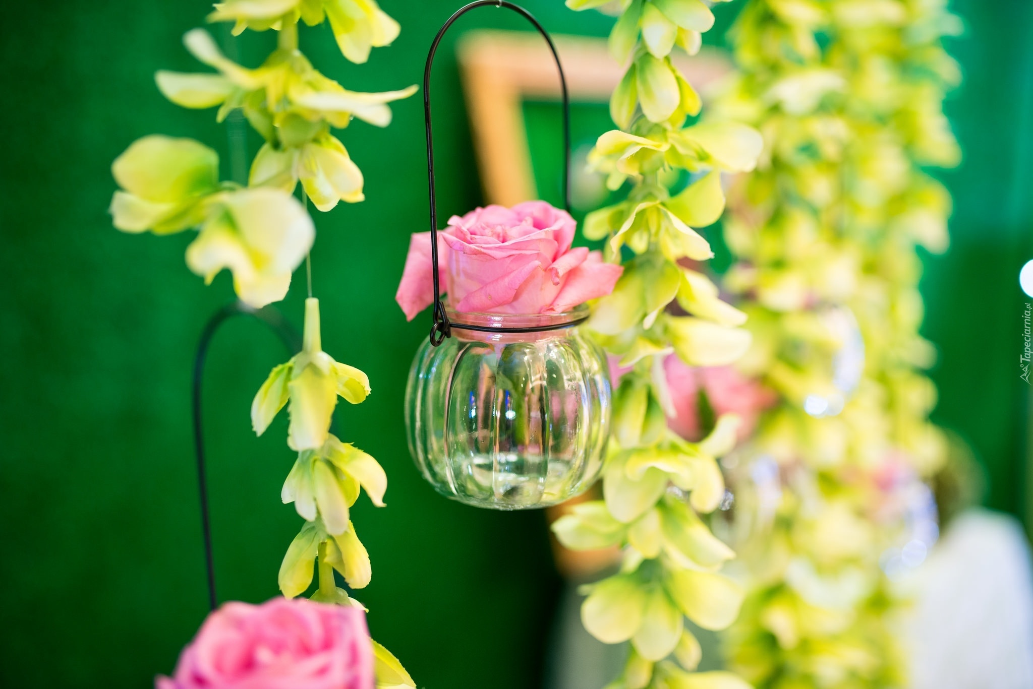 Edytor tapety: Kwiat, Róża, Lampion, Ogród, Zielona Ściana, Wiszące Pnącza