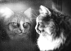 Edytor tapety: Rasowy Kot, Szyba, Deszcz, Zachód Słońca