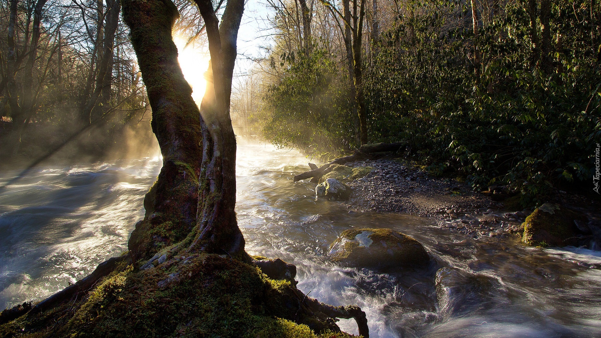 Edytor tapety: Rzeka, Kamienie, Drzewa