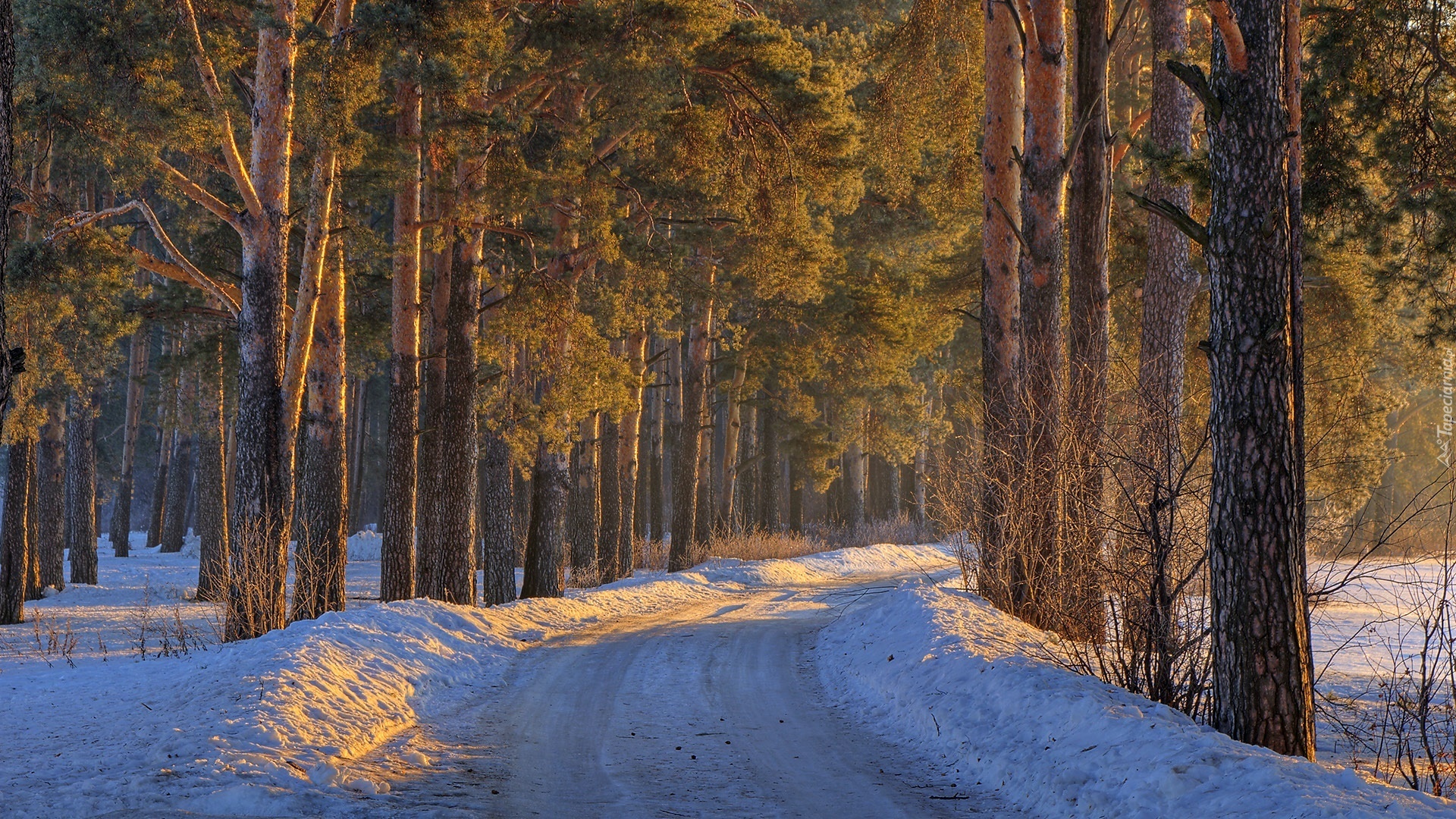 Edytor tapety: Droga, Las, Zima