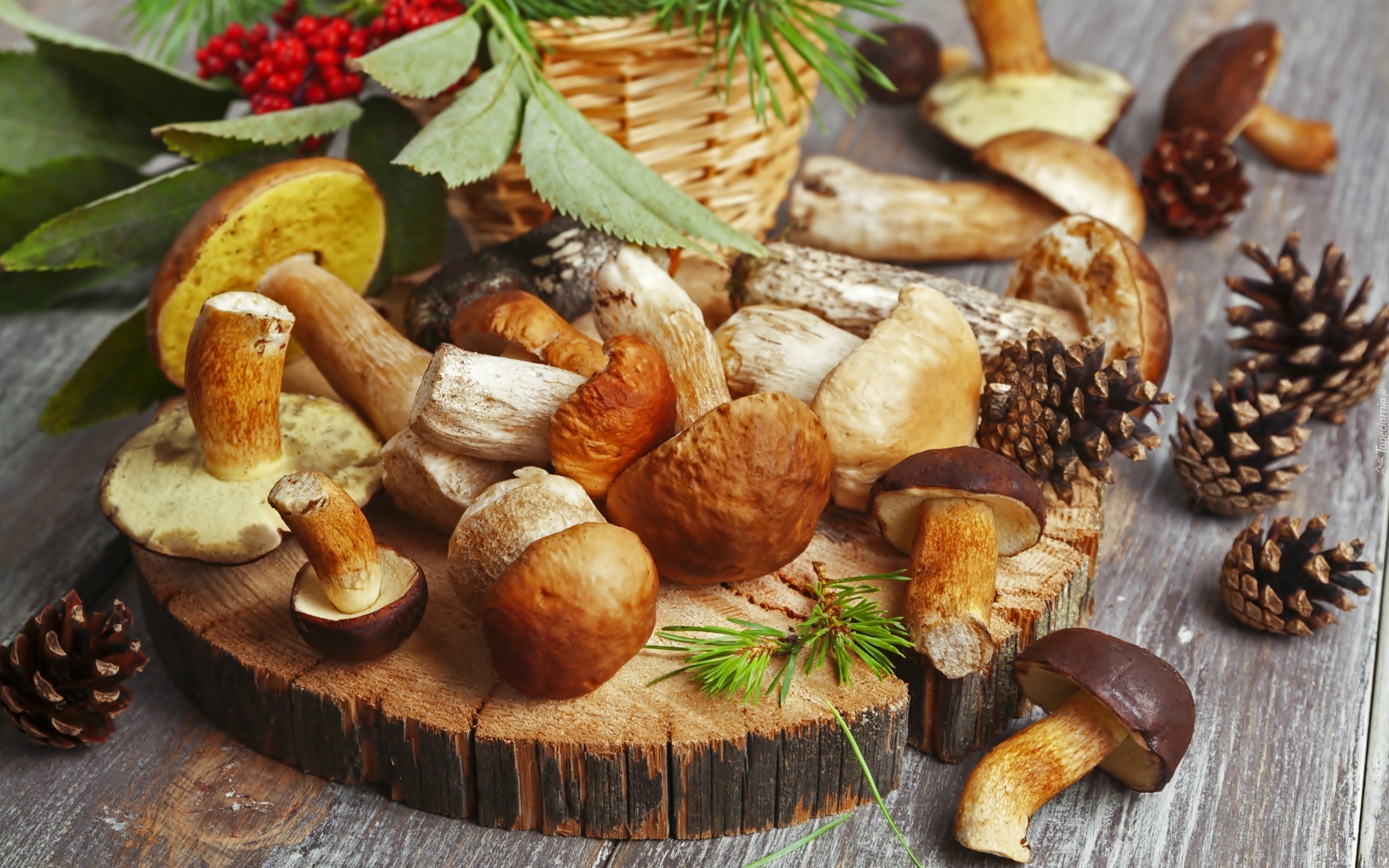 Edytor tapety: Grzyby, Szyszki, Kosz, Jarzębina