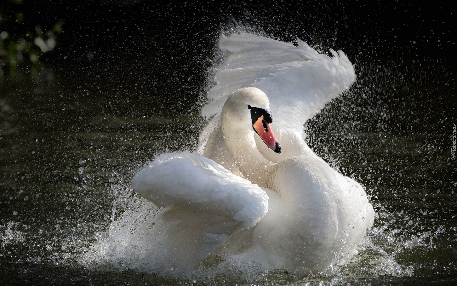 Edytor tapety: Ptak, Łabędź, Woda, Krople