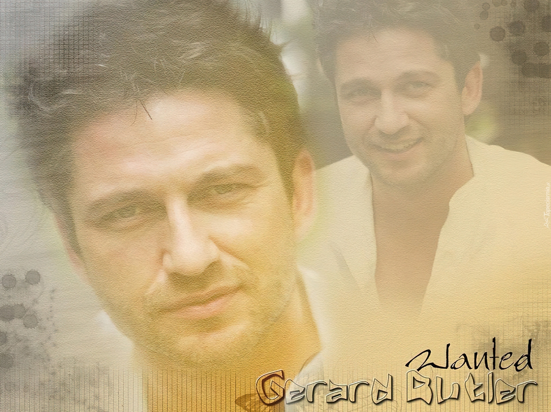 Edytor tapety: Gerard Butler,biała koszula, niebieskie oczy