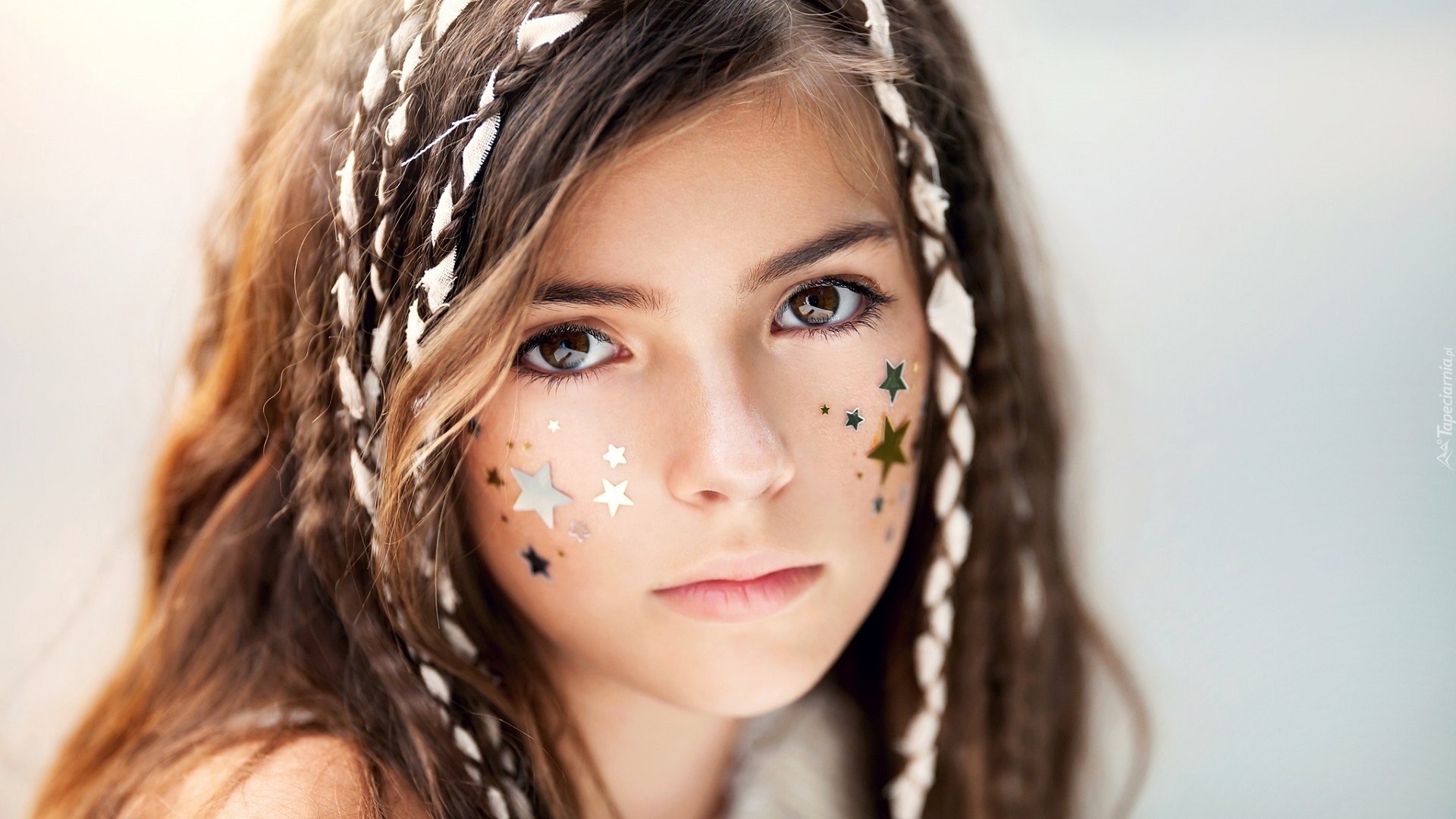 Edytor tapety: Dziewczyna, Makijaż, Warkoczyki, Gwiazdki