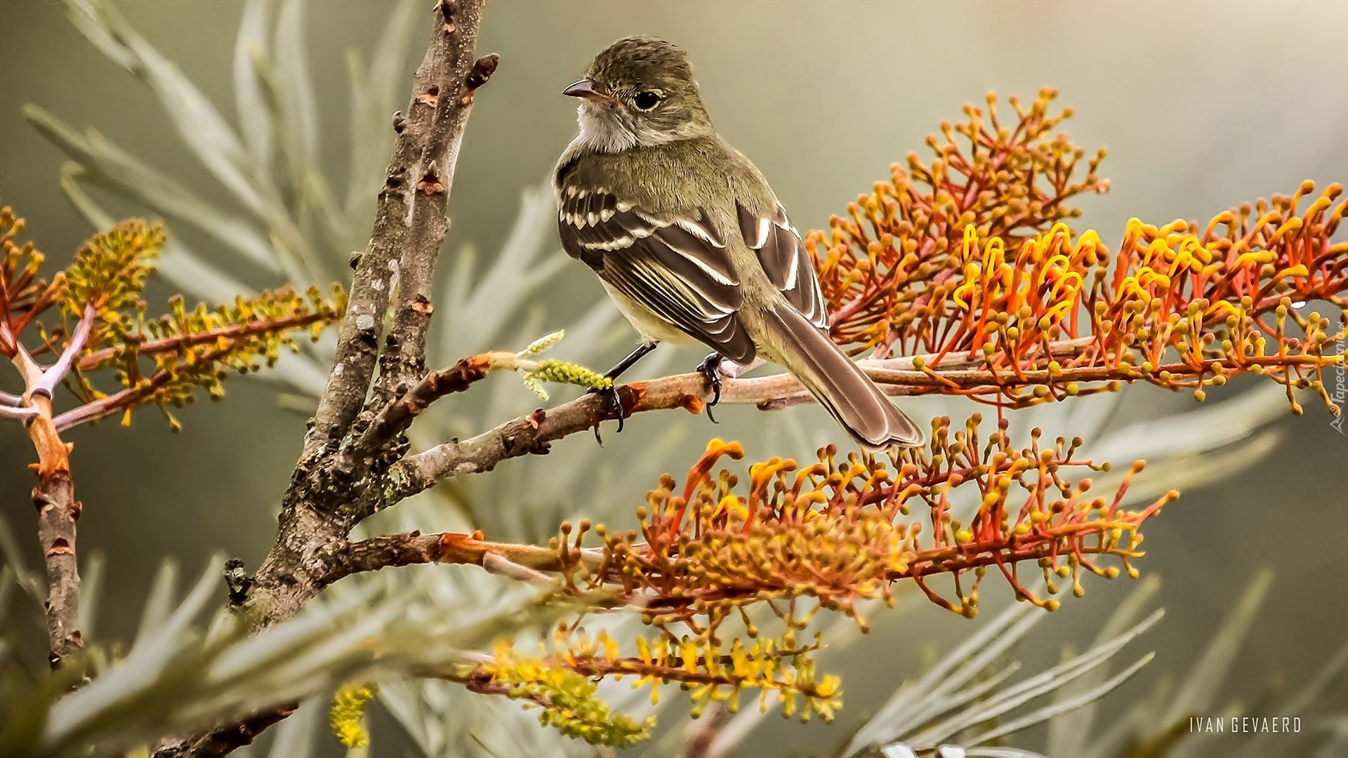 Edytor tapety: Ptak, Piecuszek, Kwiaty, Gałązki