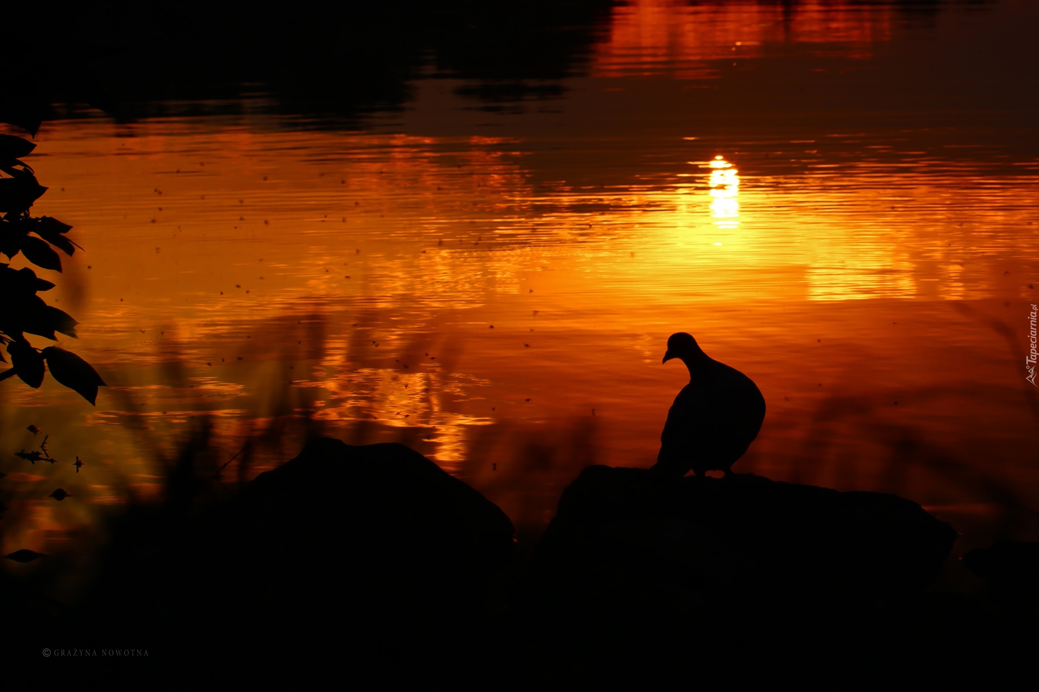 Edytor tapety: Zachód Słońca, Jezioro, Gołąb