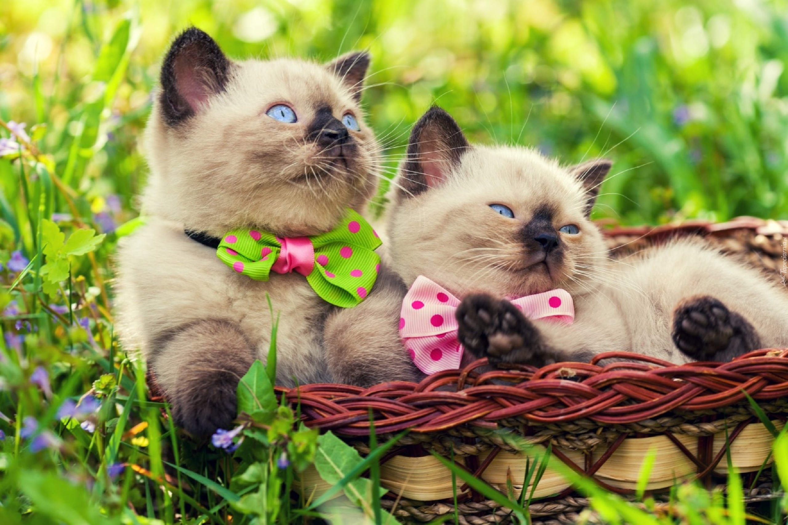 Edytor tapety: Dwa, Syjamskie, Kotki, Krawaty, Koszyk, Łąka