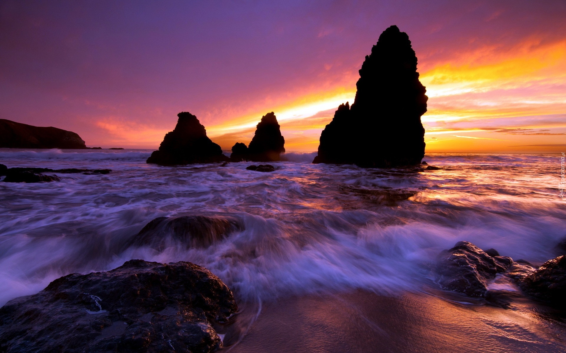 Edytor tapety: Zachód Słońca, Morze, Skały