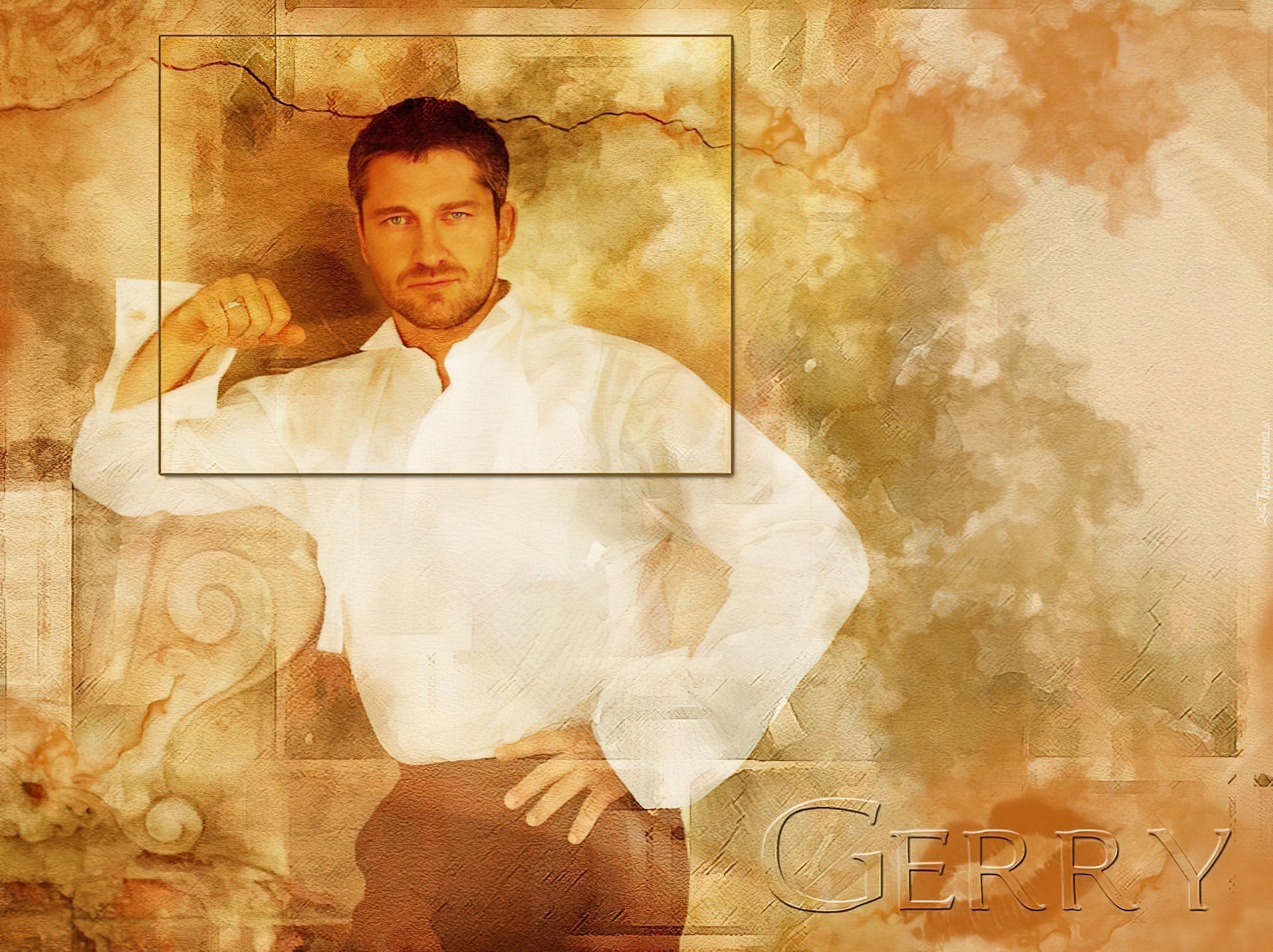 Edytor tapety: Gerard Butler,biała koszula