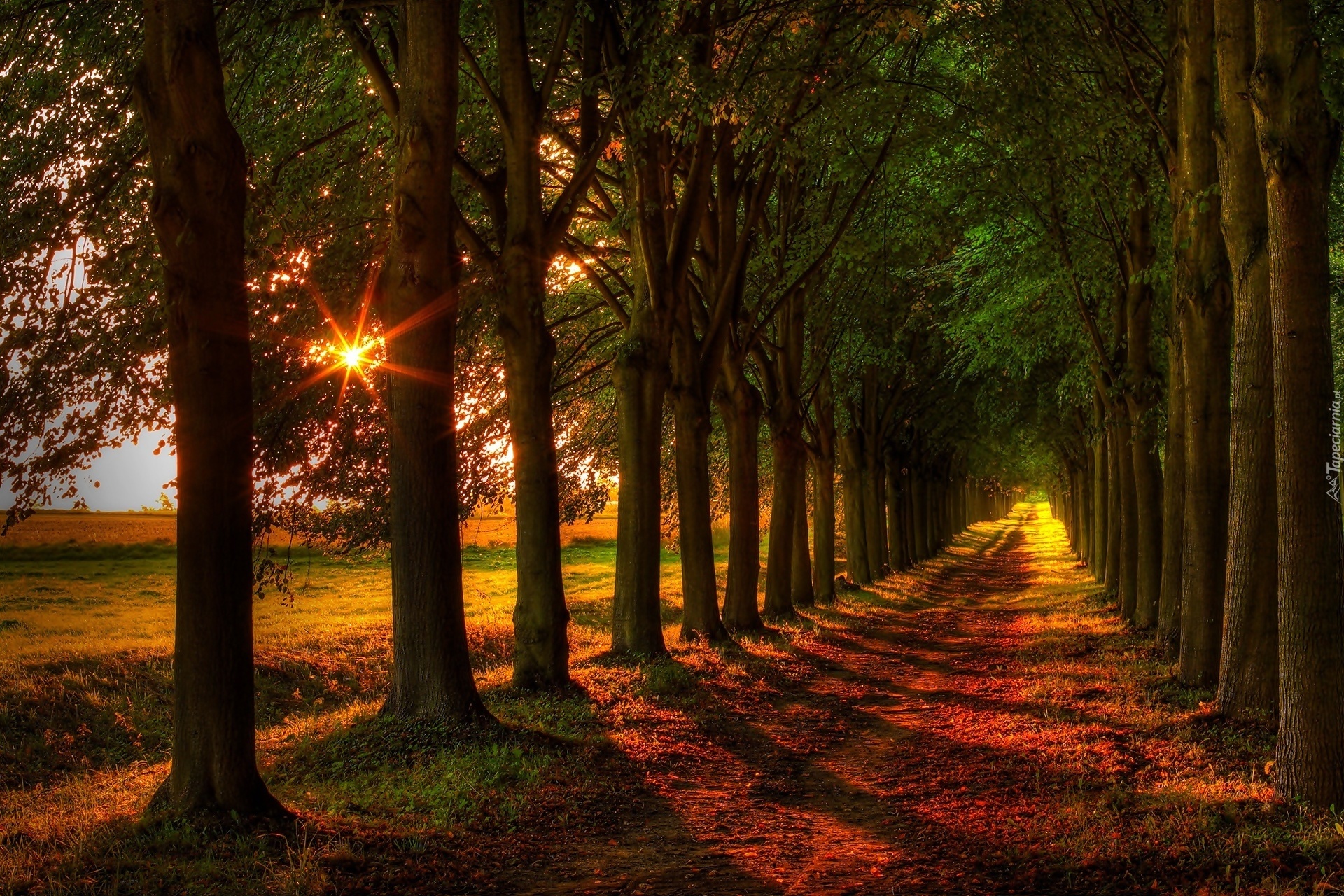 Edytor tapety: Droga, Las, Promienie Słońca