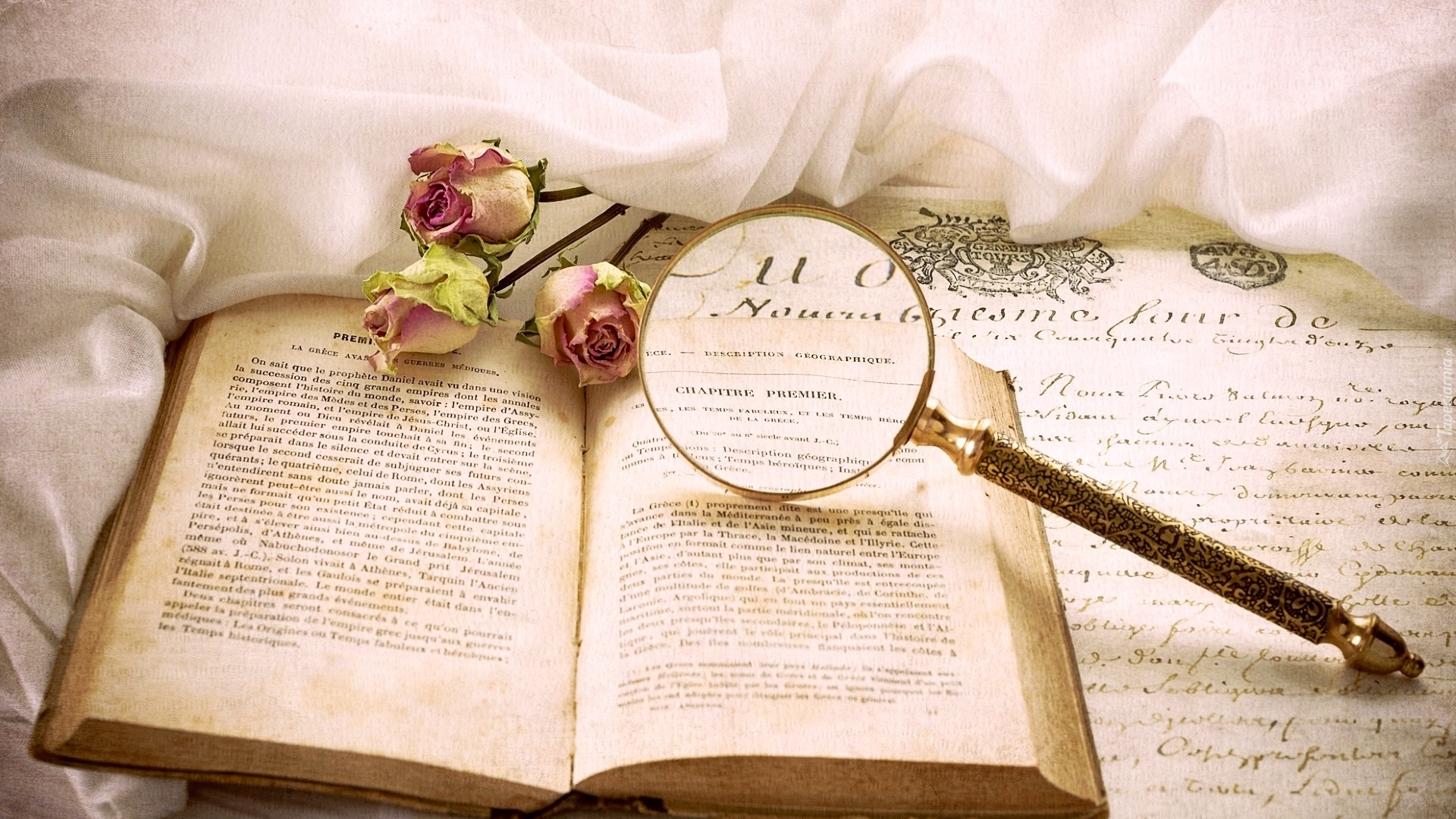 Edytor tapety: Kompozycja, Kwiaty, Róże, Lupa, Książka