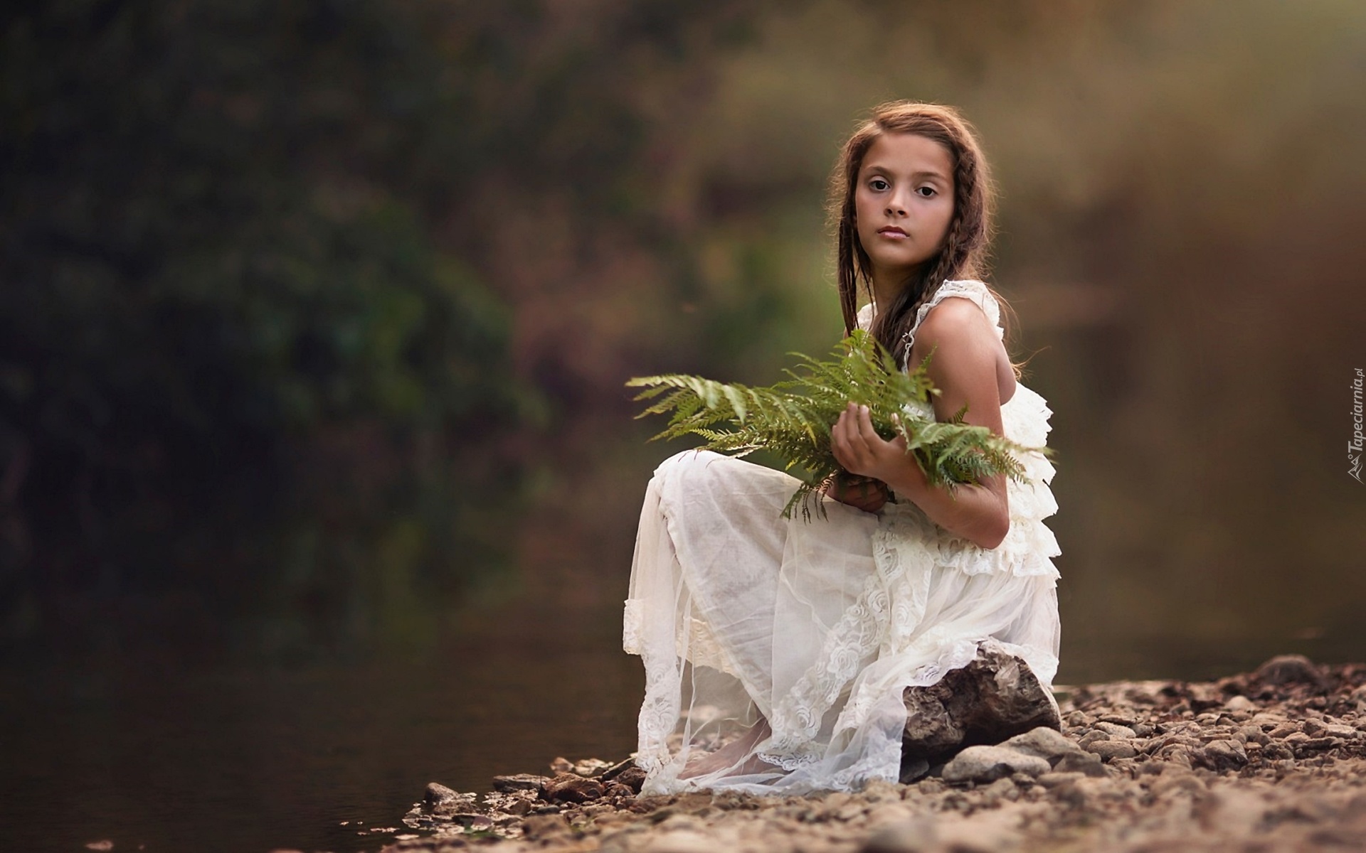 Edytor tapety: Dziewczyna, Paprocie, Kamienie