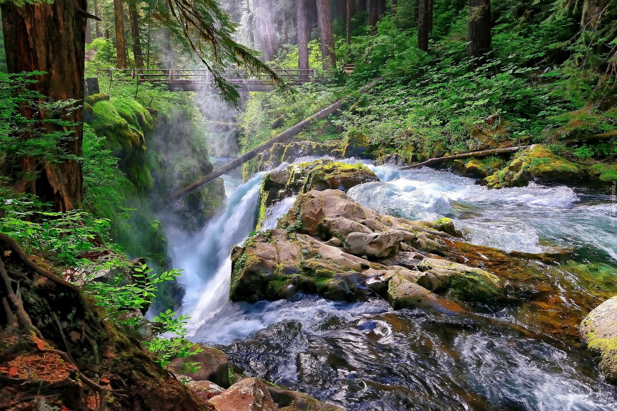 Edytor tapety: Las, Rzeka, Skały, Most
