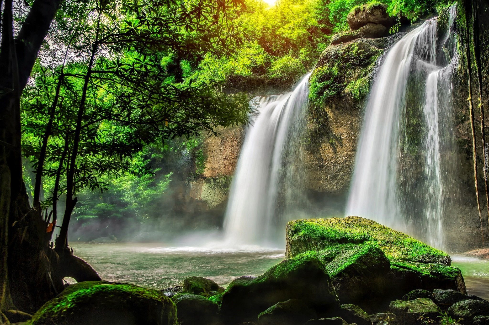 Edytor tapety: Las, Wodospad, Strumień, Kamienie, Mech