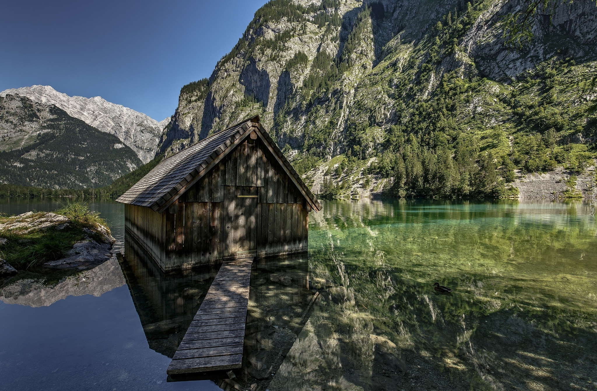 Edytor tapety: Szopa, Góry, Jezioro, Bawaria