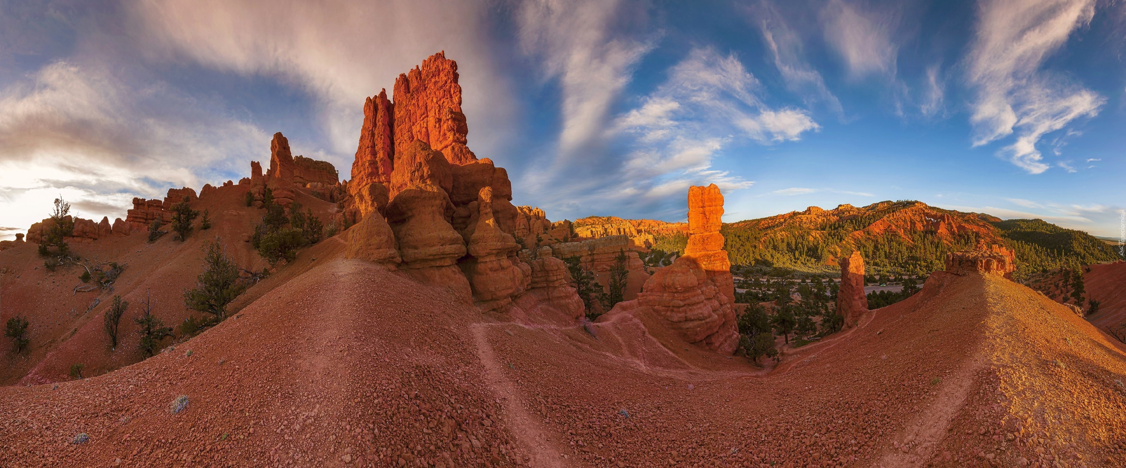 Edytor tapety: Góry, Skały, Zachód Słońca, Panorama