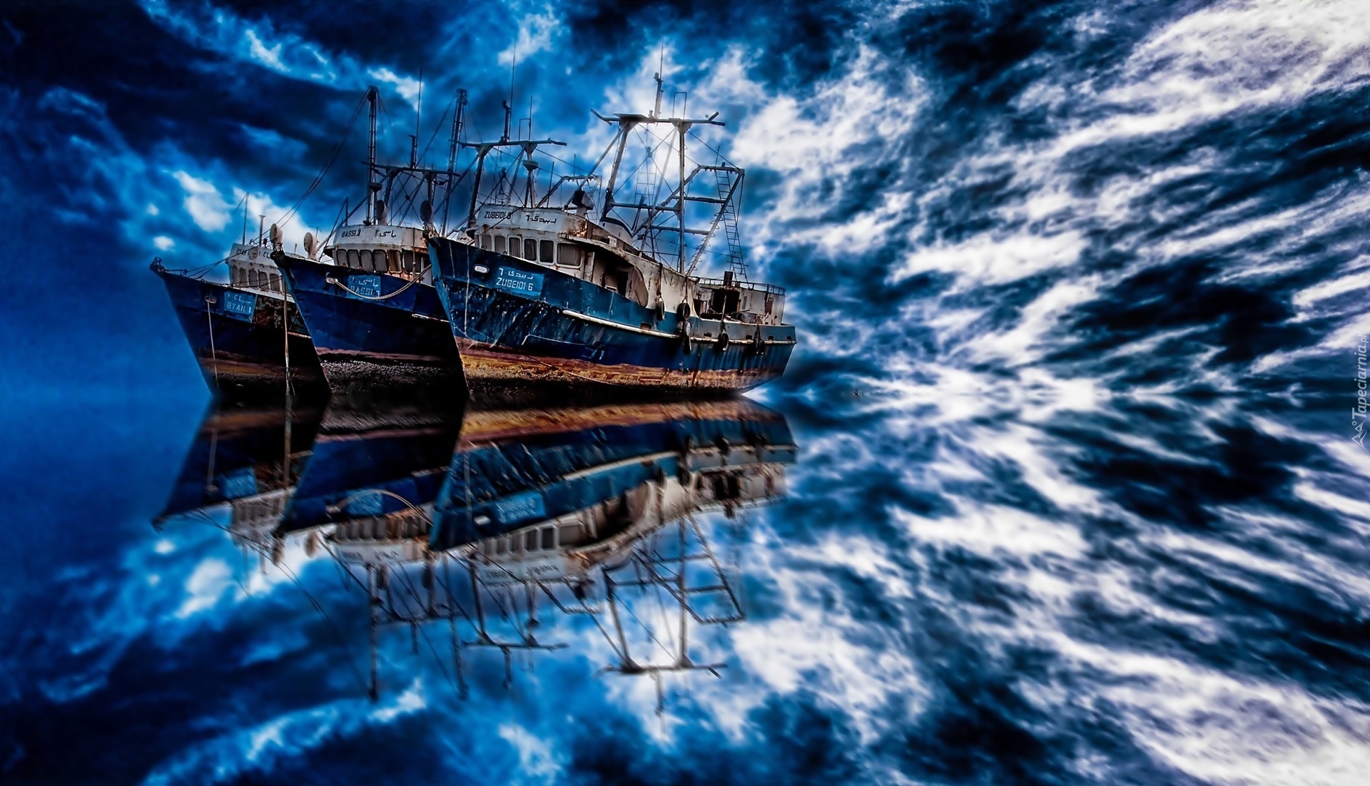 Edytor tapety: Trzy, Statki, Morze, Niebo, Odbicie