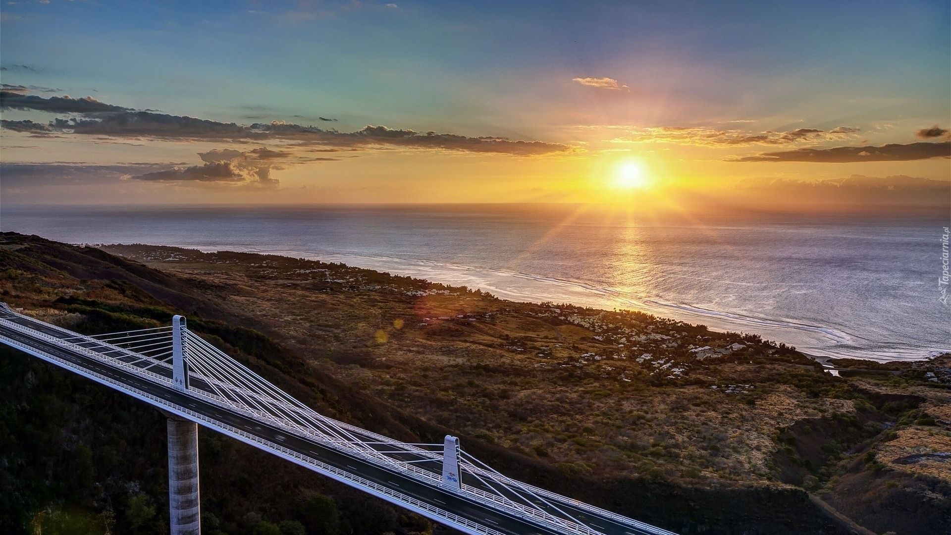 Edytor tapety: Most, Droga, Zachód słońca, Morze