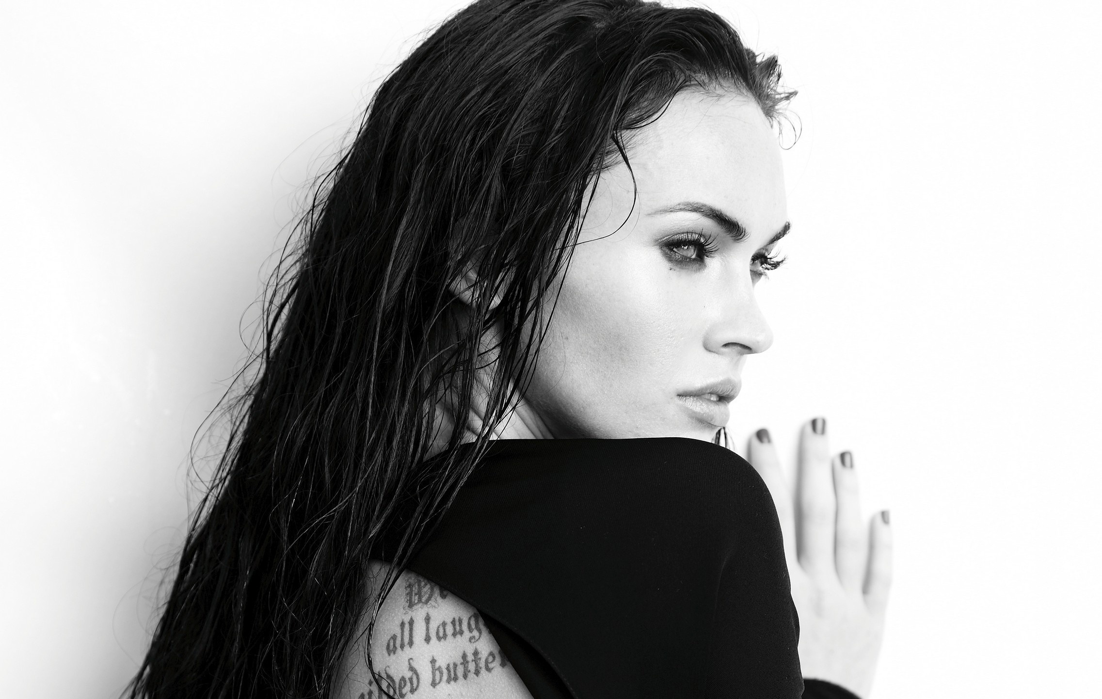 Edytor tapety: Kobieta, Megan Fox, Aktorka, Makijaż, Tatułaż, Czarno-Białe